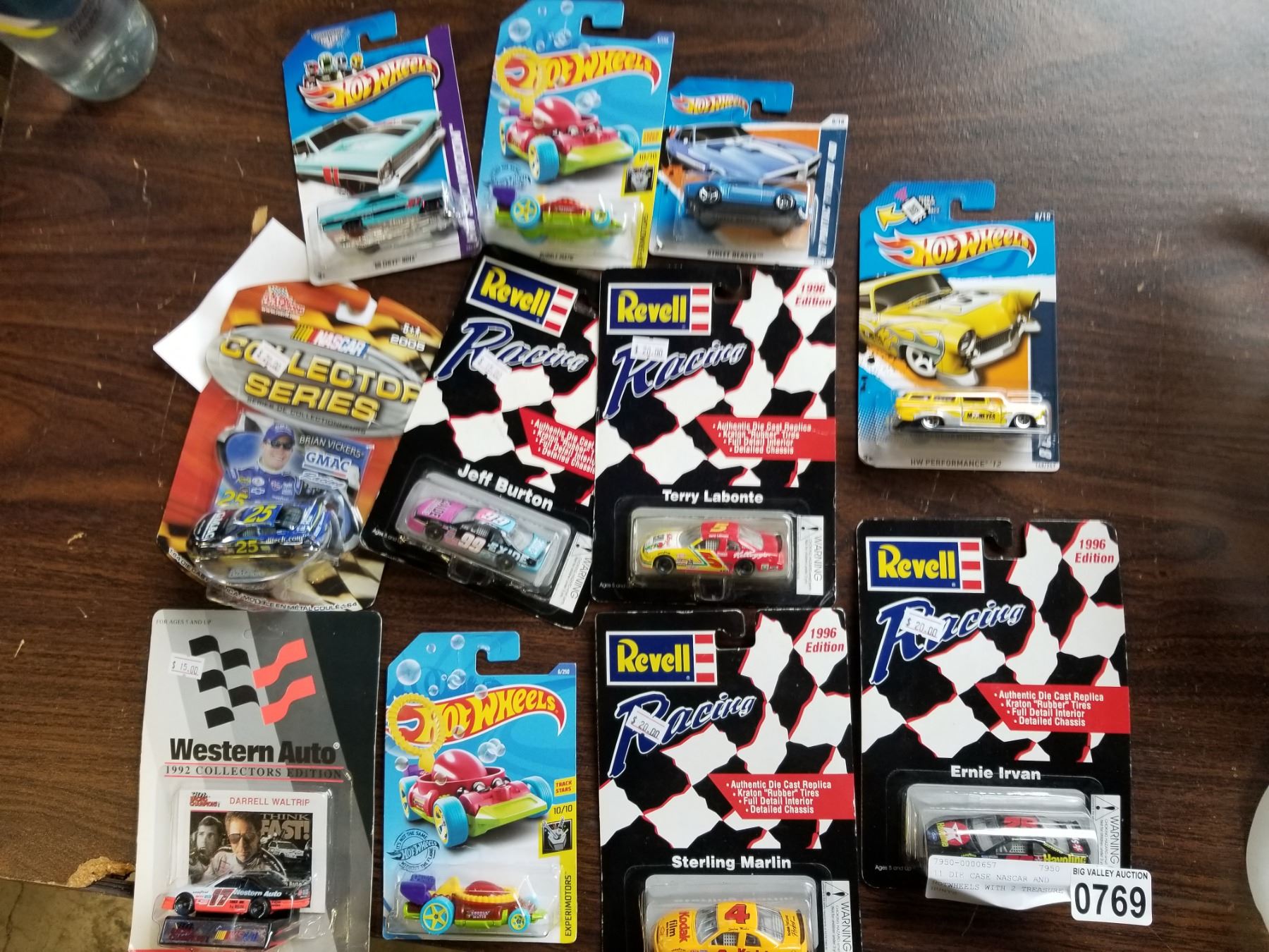 11 DIE CASE NASCAR AND HOTWHEELS WITH 2 TREASURE HUNTS