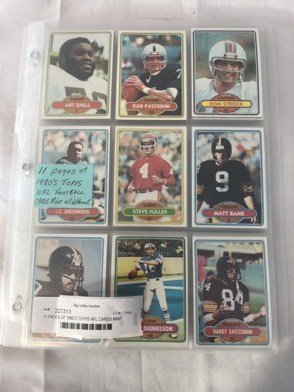 11 PAGES OF 1980'S TOPPS NFL CARDS MINT CONDITION ALL DIFFERENT