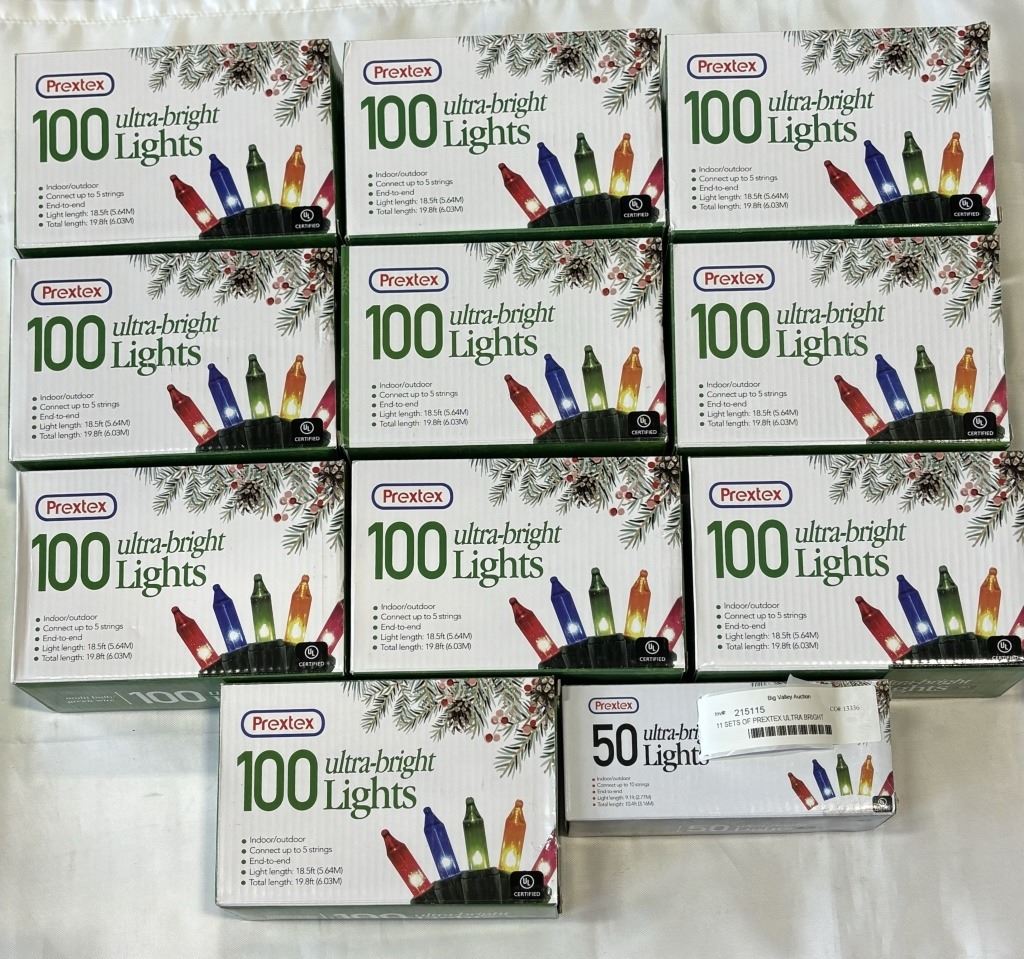 11 SETS OF PREXTEX ULTRA BRIGHT INDOOR/OUTDOOR HOLIDAY LIGHTS, 10 PACKS OF 100, AND ONE PACK OF 50