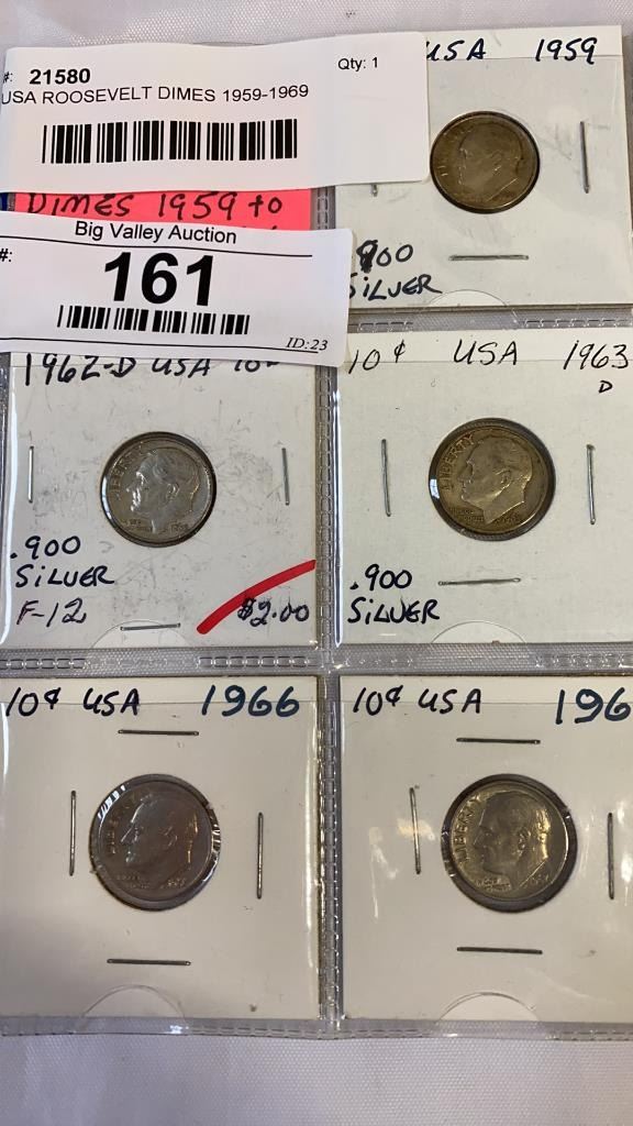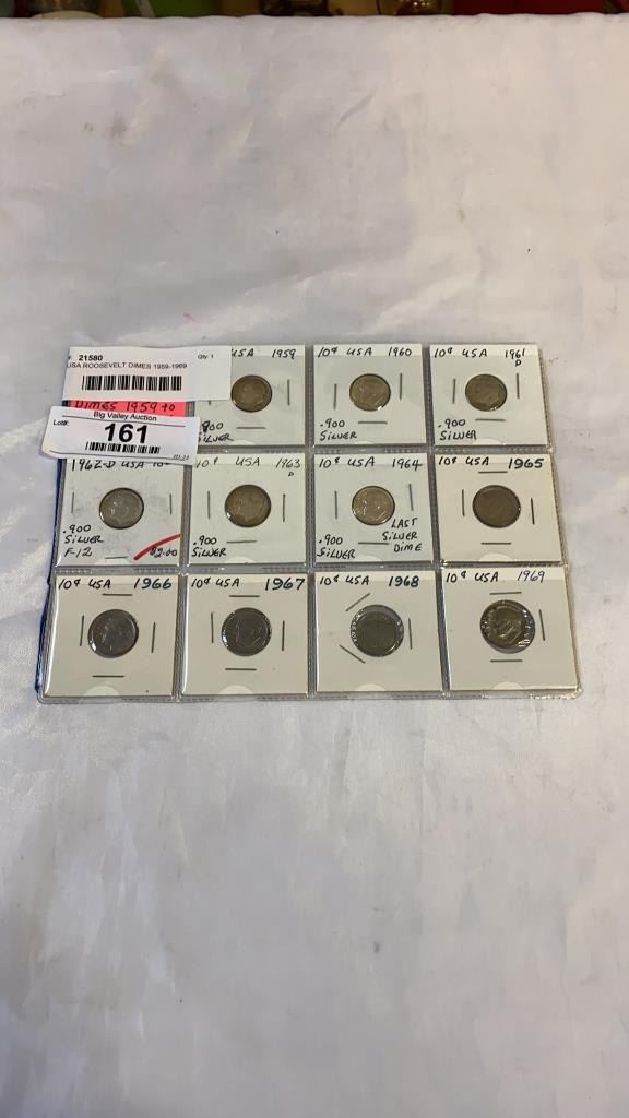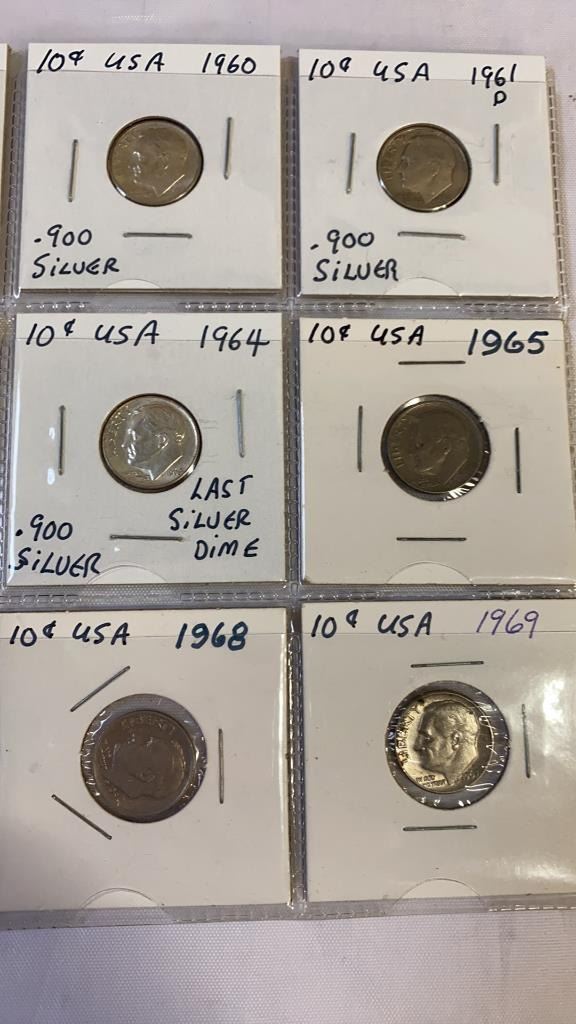 11 USA ROOSEVELT DIMES 1959-1969 (1959-64 ARE .900 SILVER)