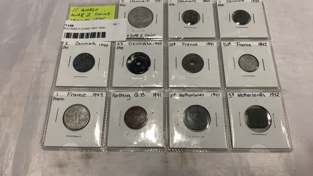 11 WORLD WAR II COINS 1941-1945 - DENMARK, FRANCE, ENGLAND, NETHERLANDS