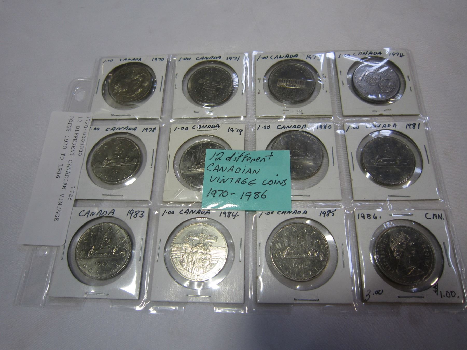 12 DIFFERENT CANADIAN VINTAGE COINS 1970 TO 1986