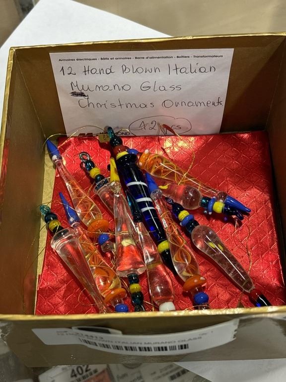 12 HAND BLOWN ITALIAN MURANO GLASS CRISTMAS ORNAMENTS