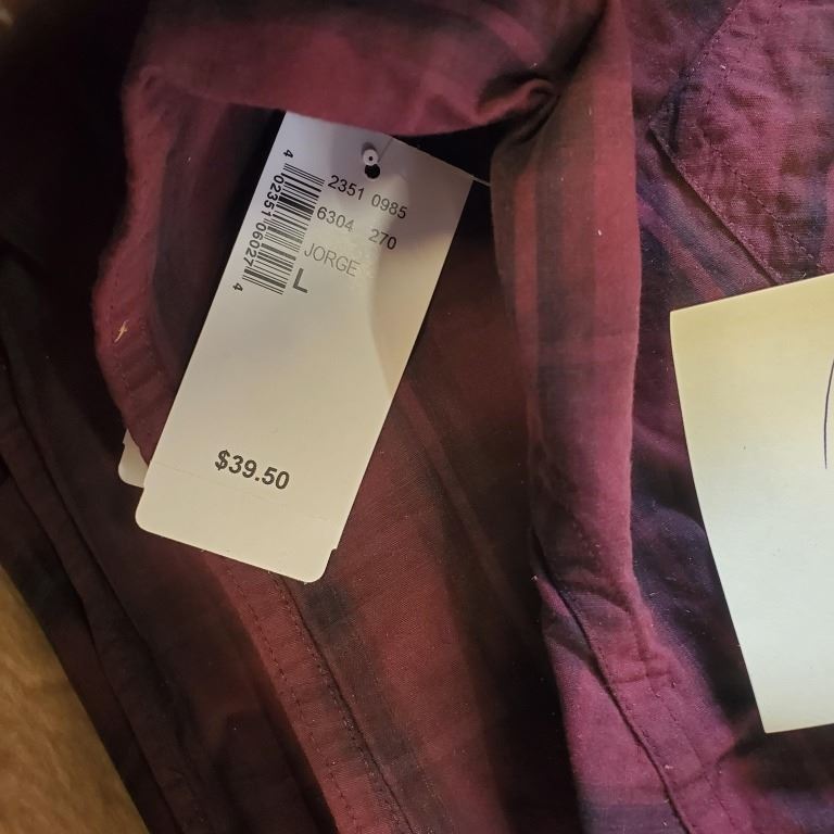 12 NEW BUTTON UP PLAID SHIRTS - SIZE LARGE, RETAIL $39EACH, $469 TOTAL