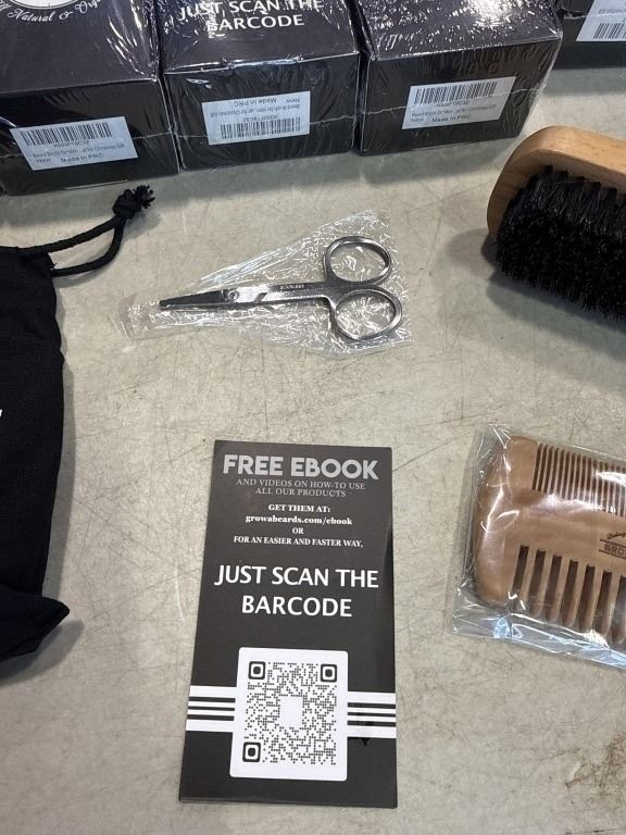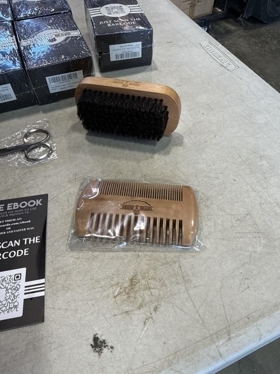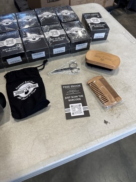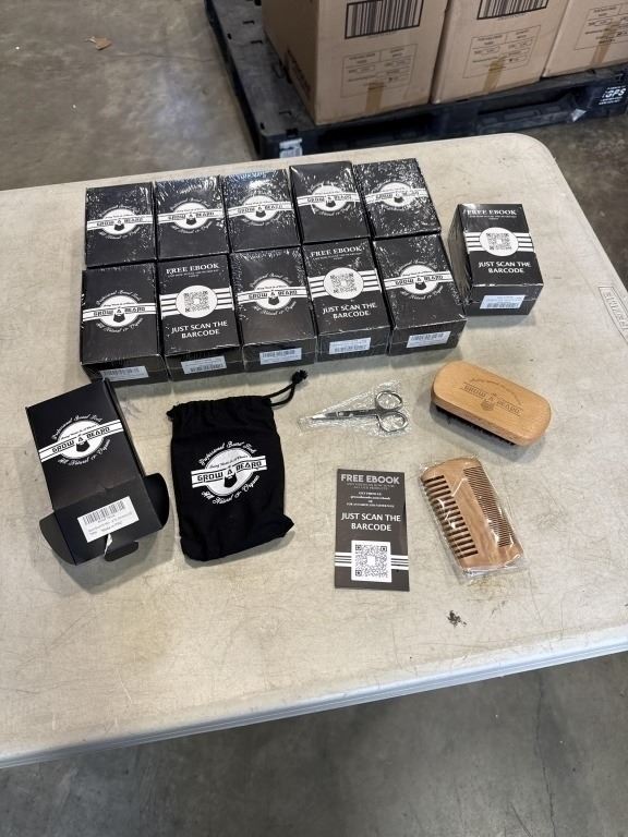 12 NEW GROW A BEARD KITS, EACH KIT INCLUDES WOODEN BRUSH, DOUBLE SIDED COMB, TRIMMING SCISSORS, CARRY BAG AND FREE EBOOK