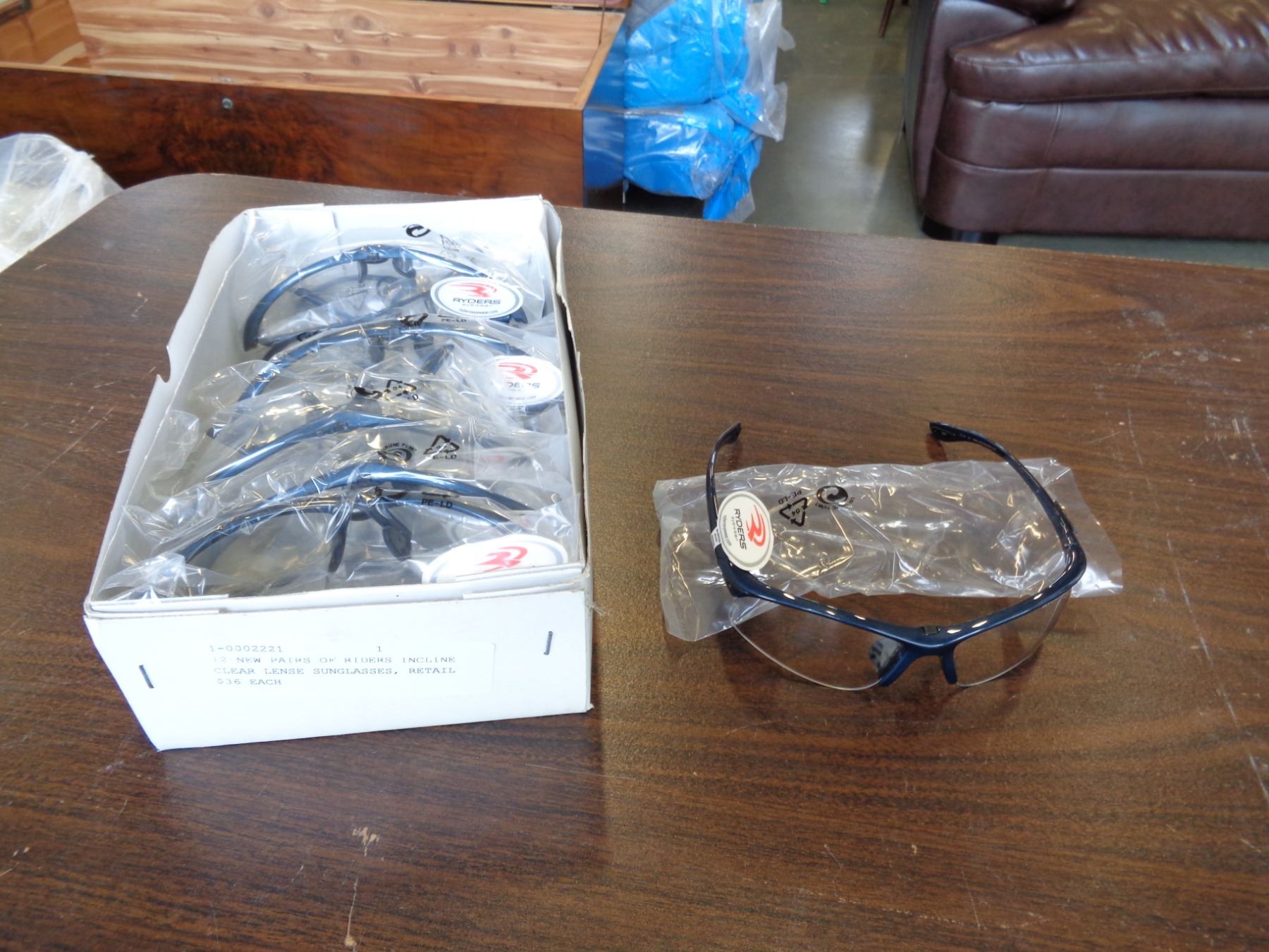 12 NEW PAIRS OF RIDERS INCLINE CLEAR LENSE SUNGLASSES, RETAIL $36 EACH