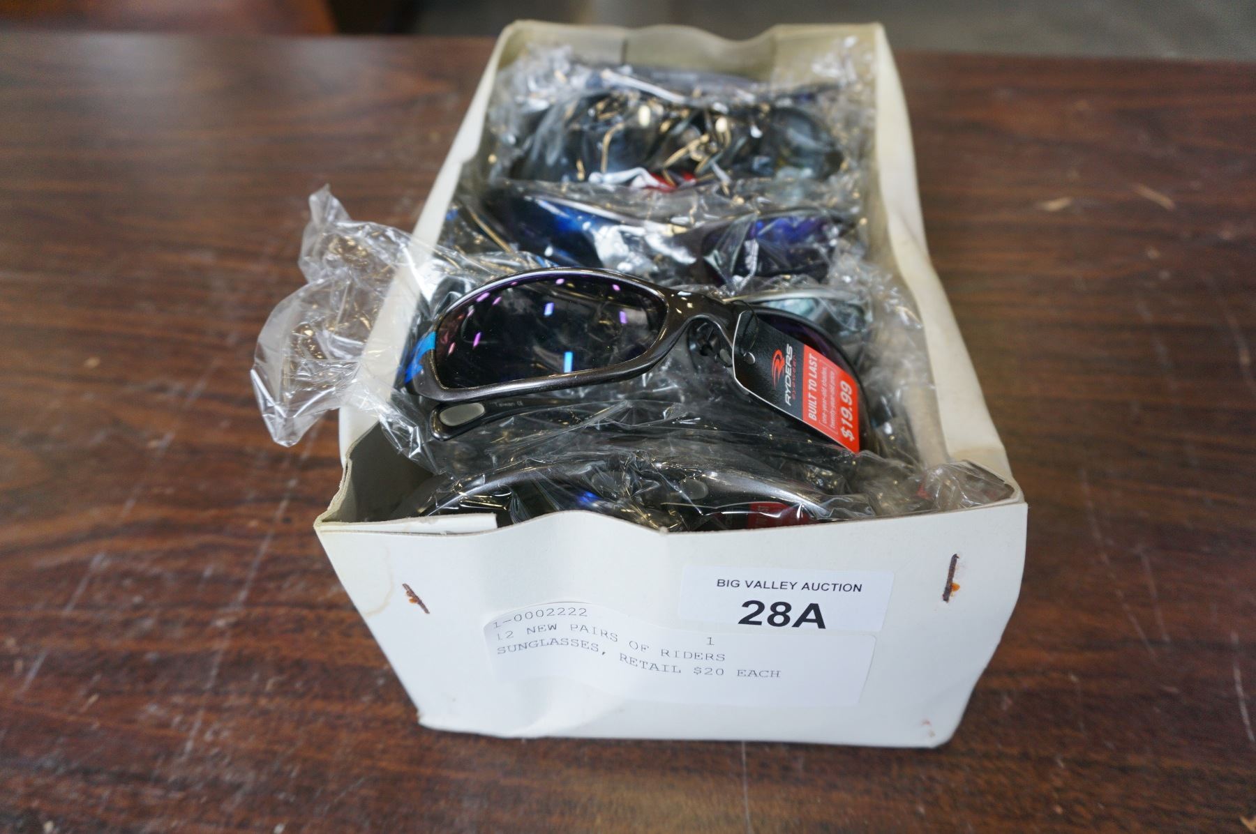 12 NEW PAIRS OF RIDERS SUNGLASSES, RETAIL $20 EACH