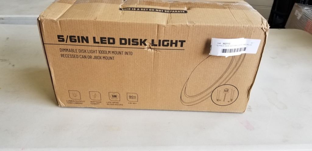 12 PACK NEW LED DISK LIGHTS, AND PLUG IN PENDANT LIGHT