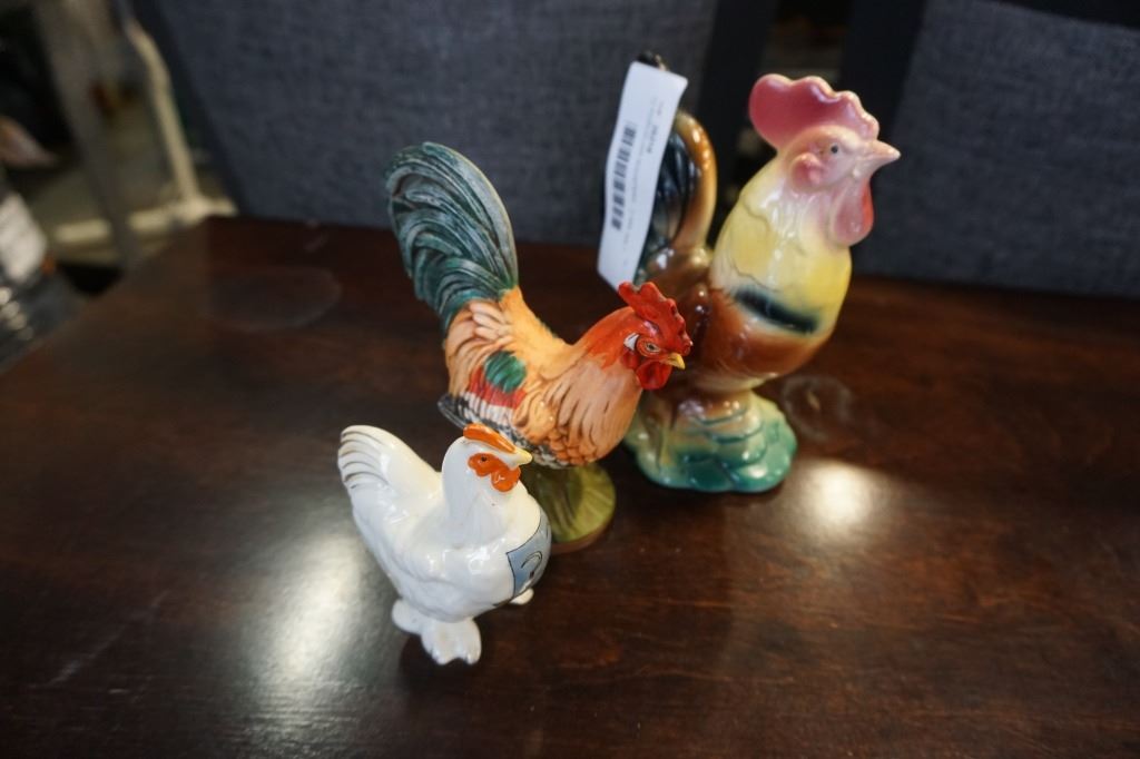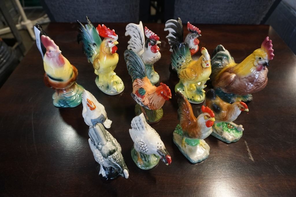 12 PORCELAIN ROOSTERS - 4 ARE SALT AND PEPPER
