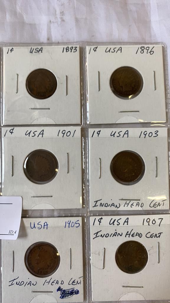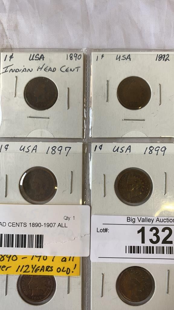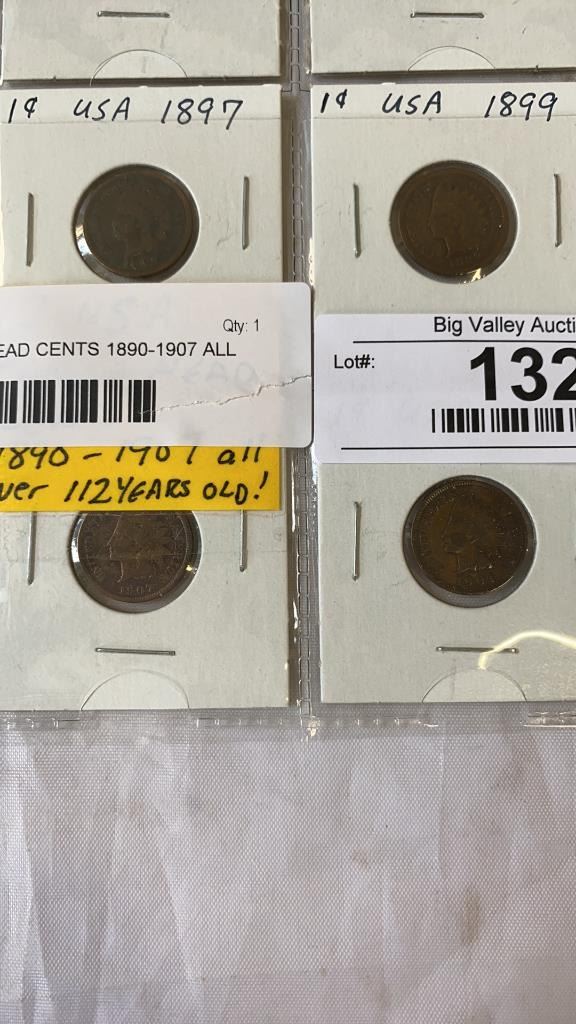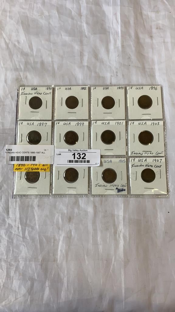 12 USA INDIAN HEAD CENTS 1890-1907 ALL OVER 112 YEARS OLD