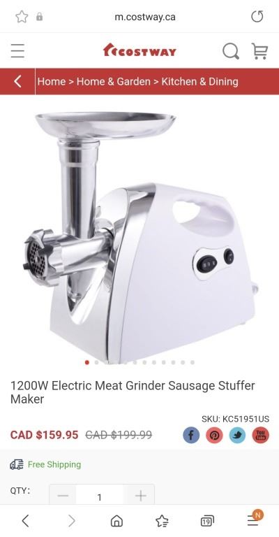 1200W Electric Meat Grinder Sausage Stuffer Maker