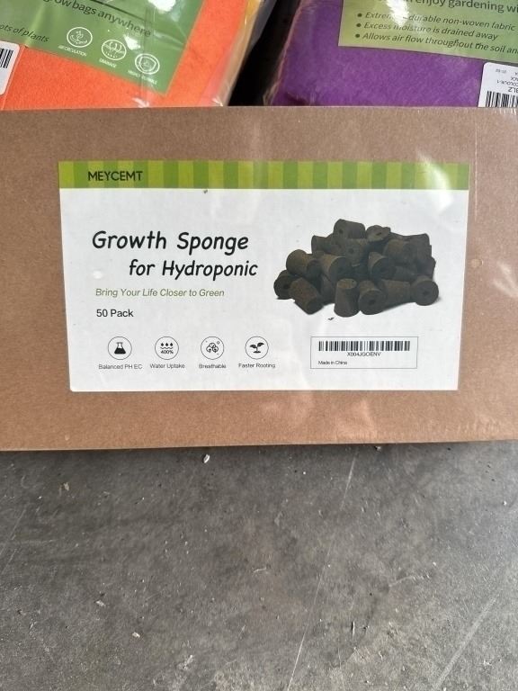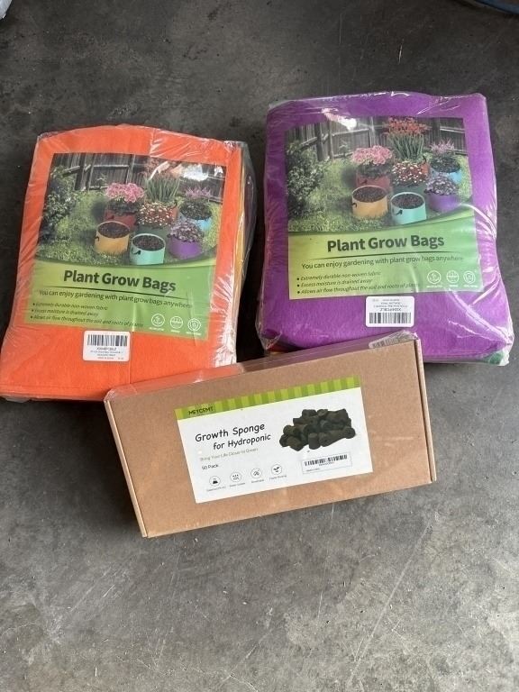 14 NEW 10 GALLON PLANT GROW BAGS, 7 COLORS, AND NEW PACK OF 50 HYDROPONIC GROWTH SPONGES