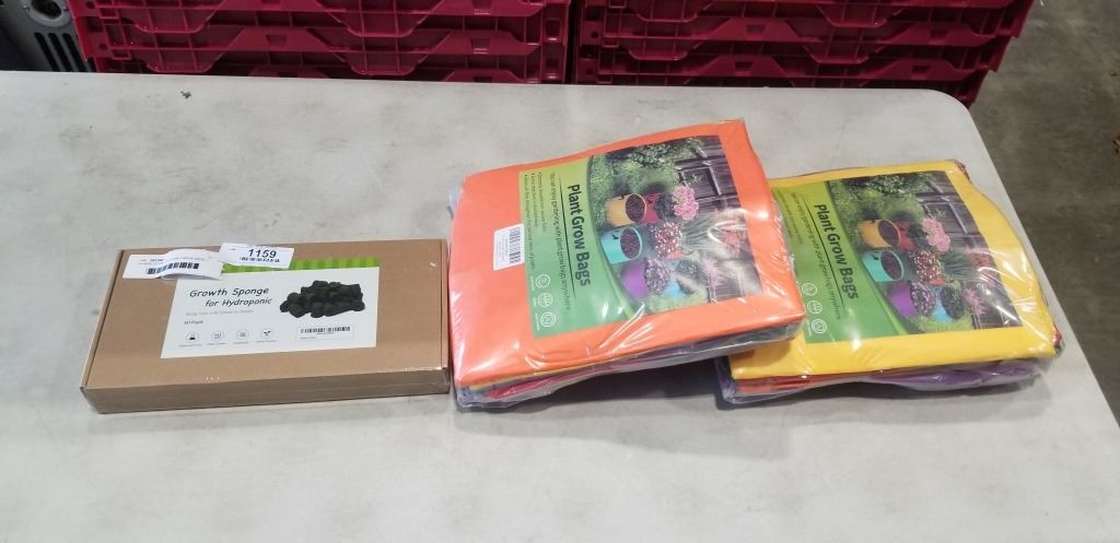 14 NEW 10 GALLON PLANT GROW BAGS, 7 COLORS, AND NEW PACK OF 50 HYDROPONIC GROWTH SPONGES