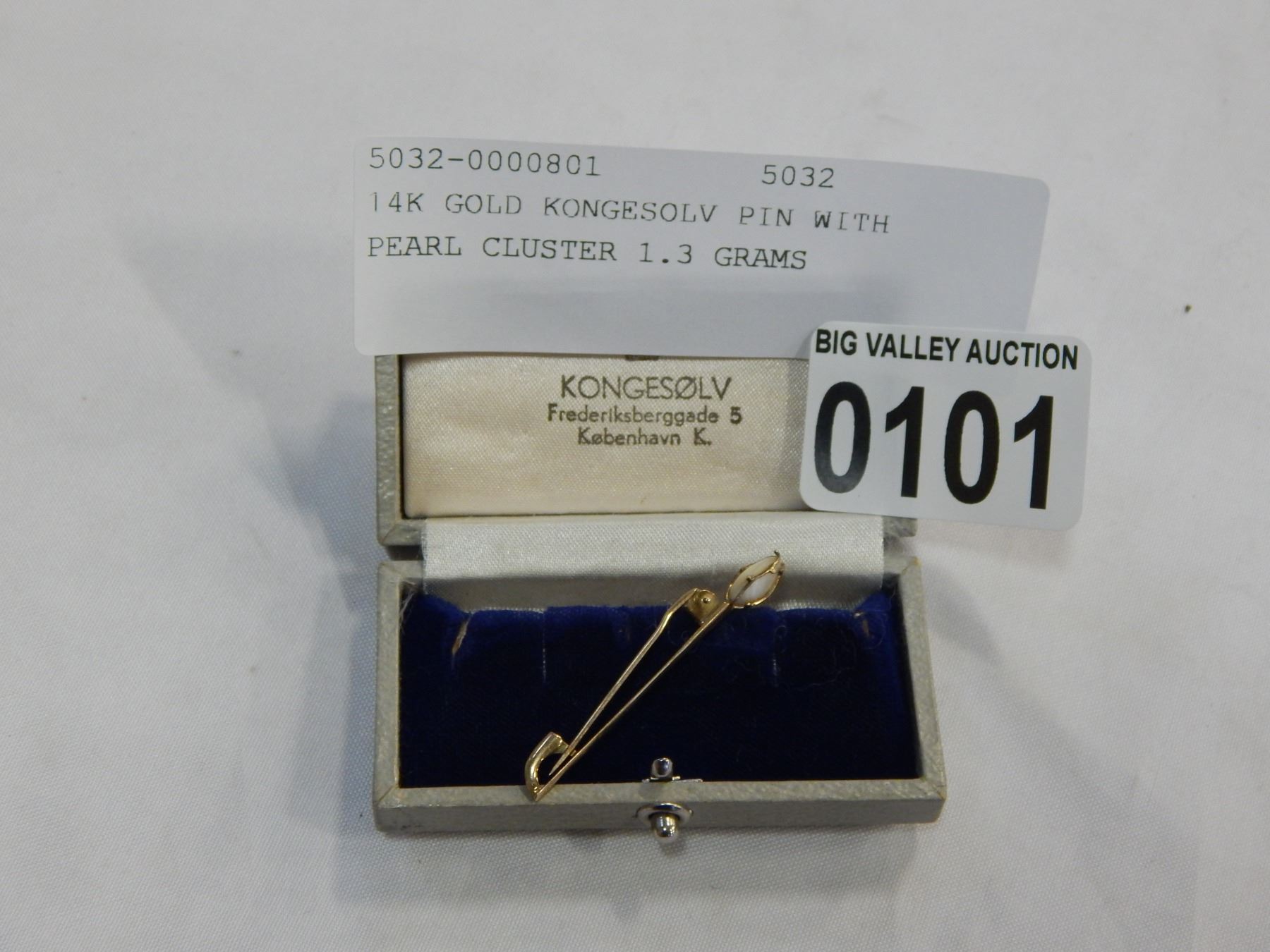 14K GOLD KONGESOLV PIN WITH PEARL CLUSTER 1.3 GRAMS