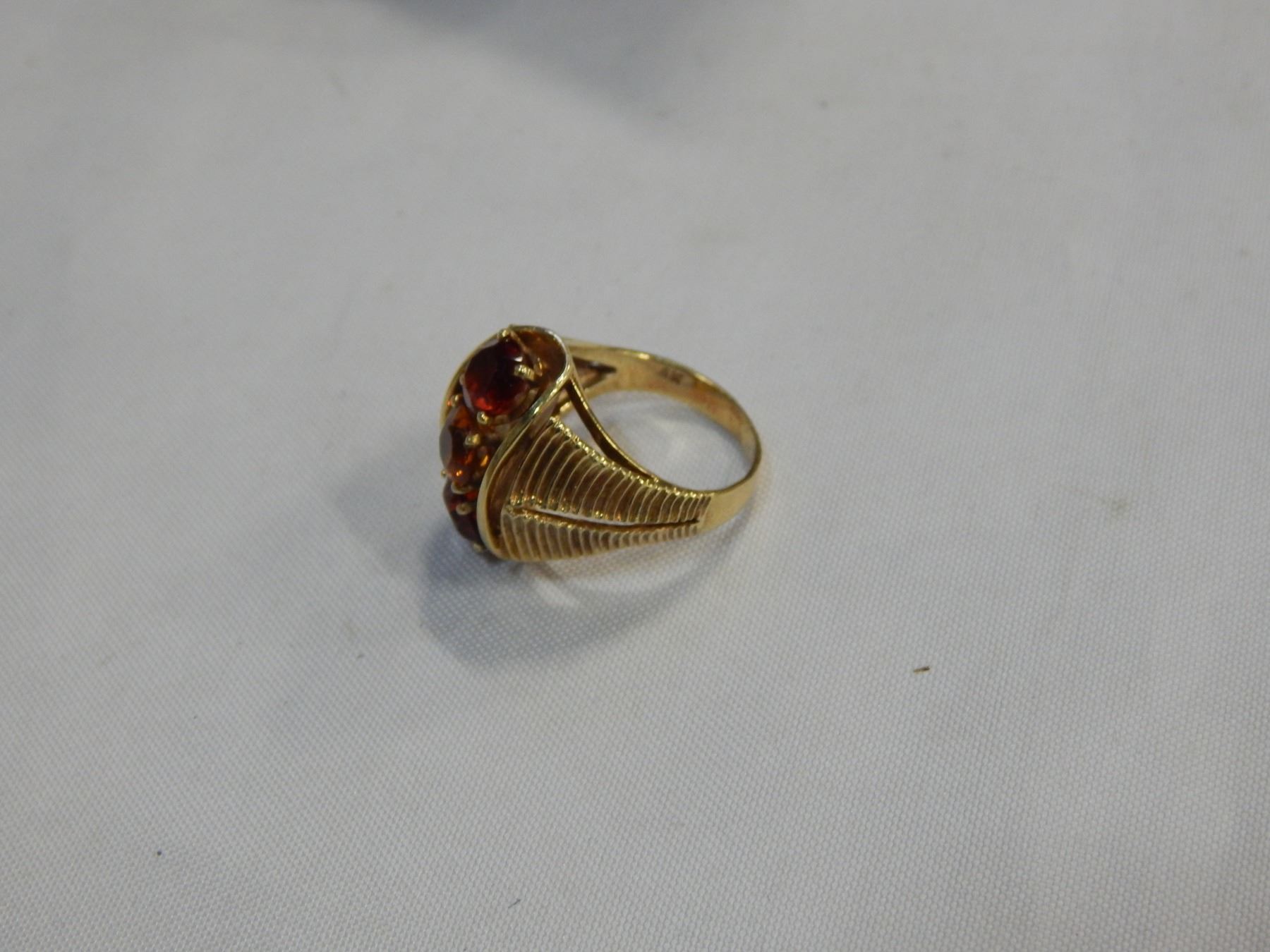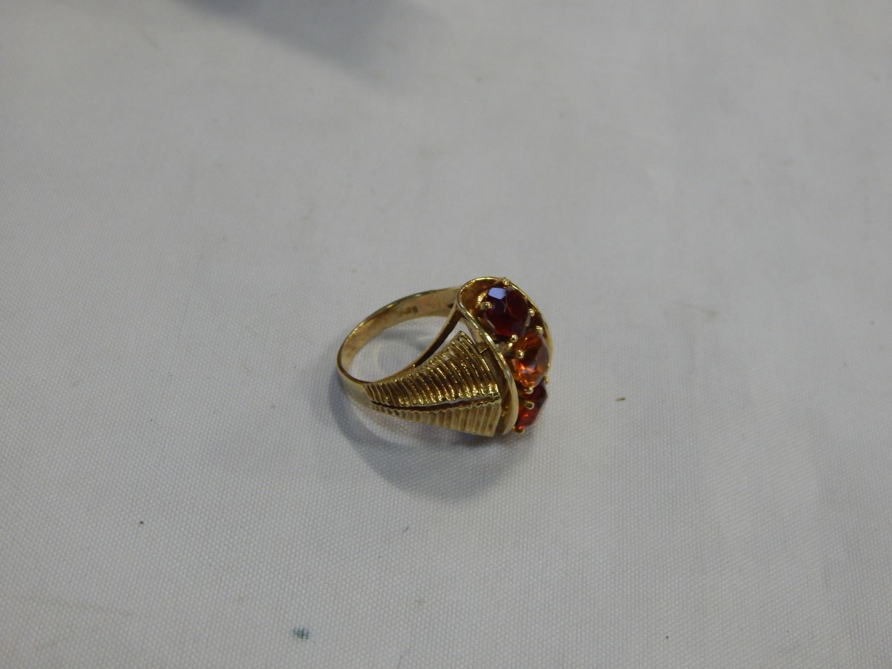 14K GOLD RING WITH 3 SEMI PRECIOUS STONES 9 GRAMS TOTAL WEIGHT