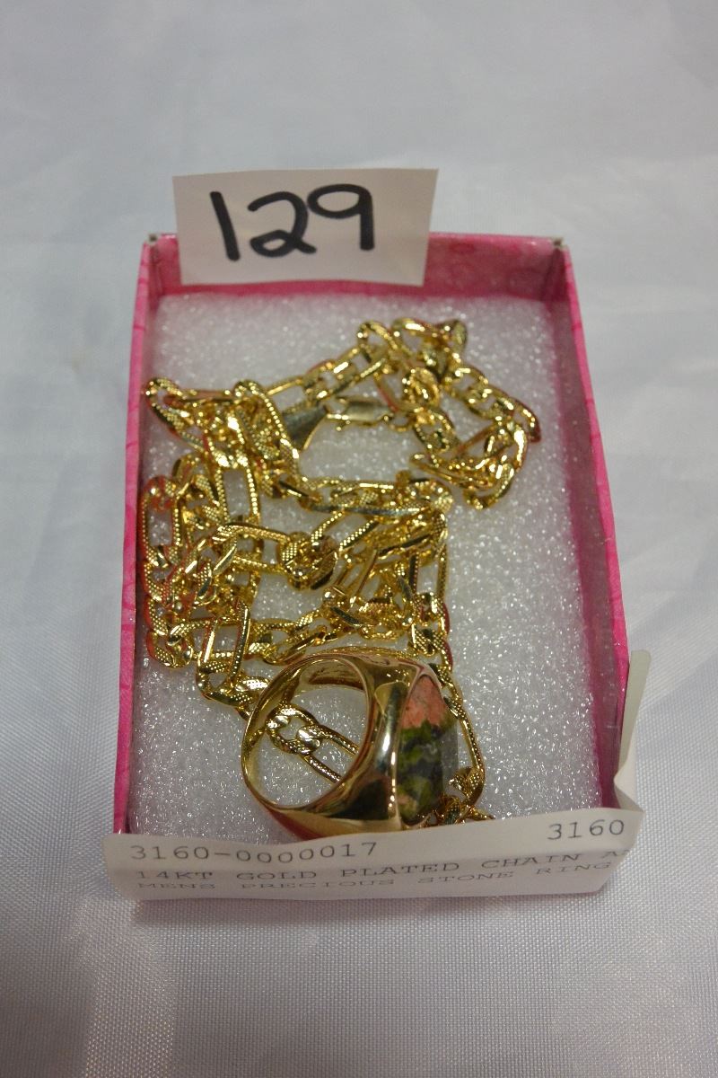 14KT GOLD PLATED CHAIN AND MENS PRECIOUS STONE RING