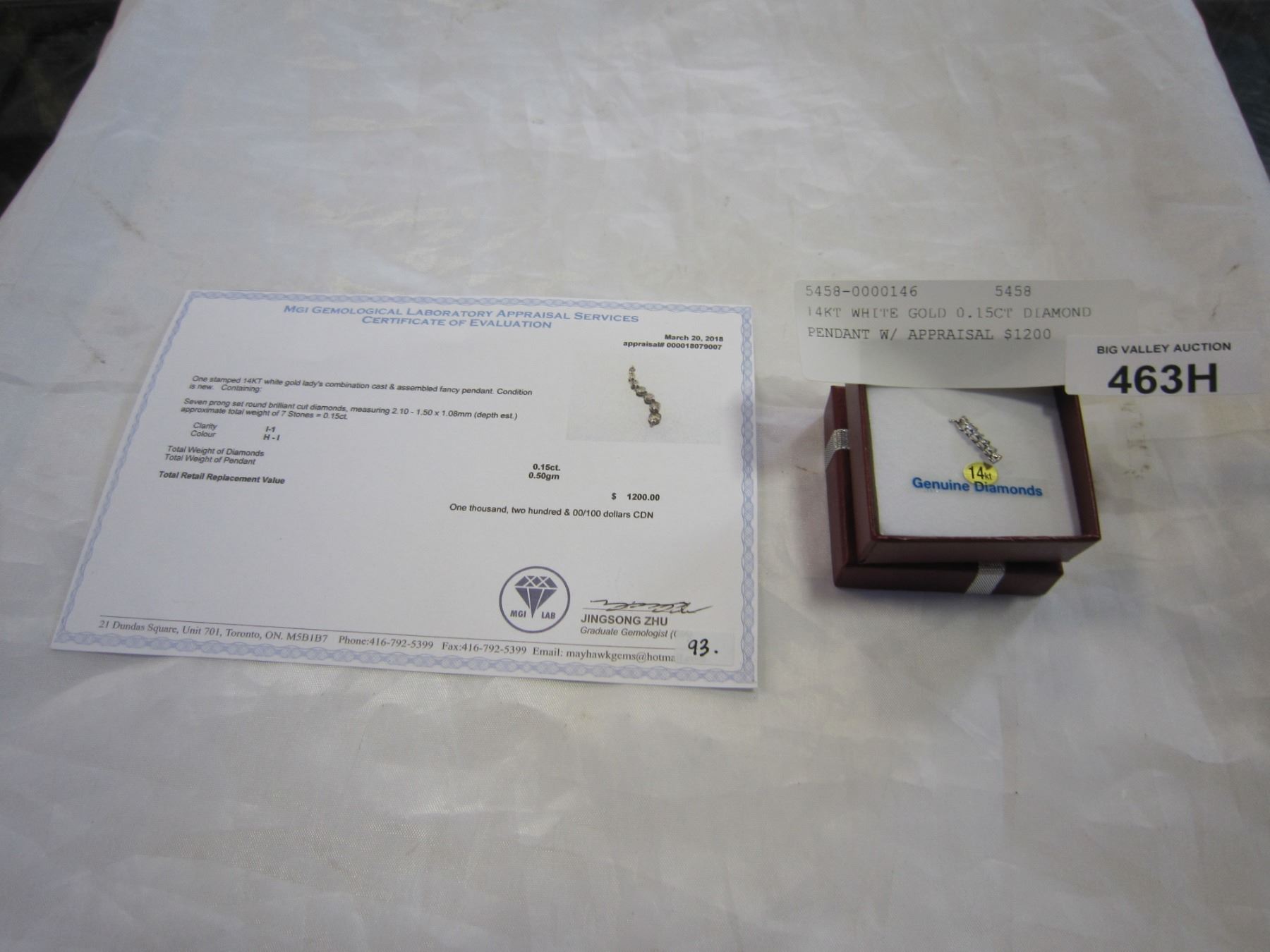 14KT WHITE GOLD 0.15CT DIAMOND PENDANT W/ APPRAISAL $1200
