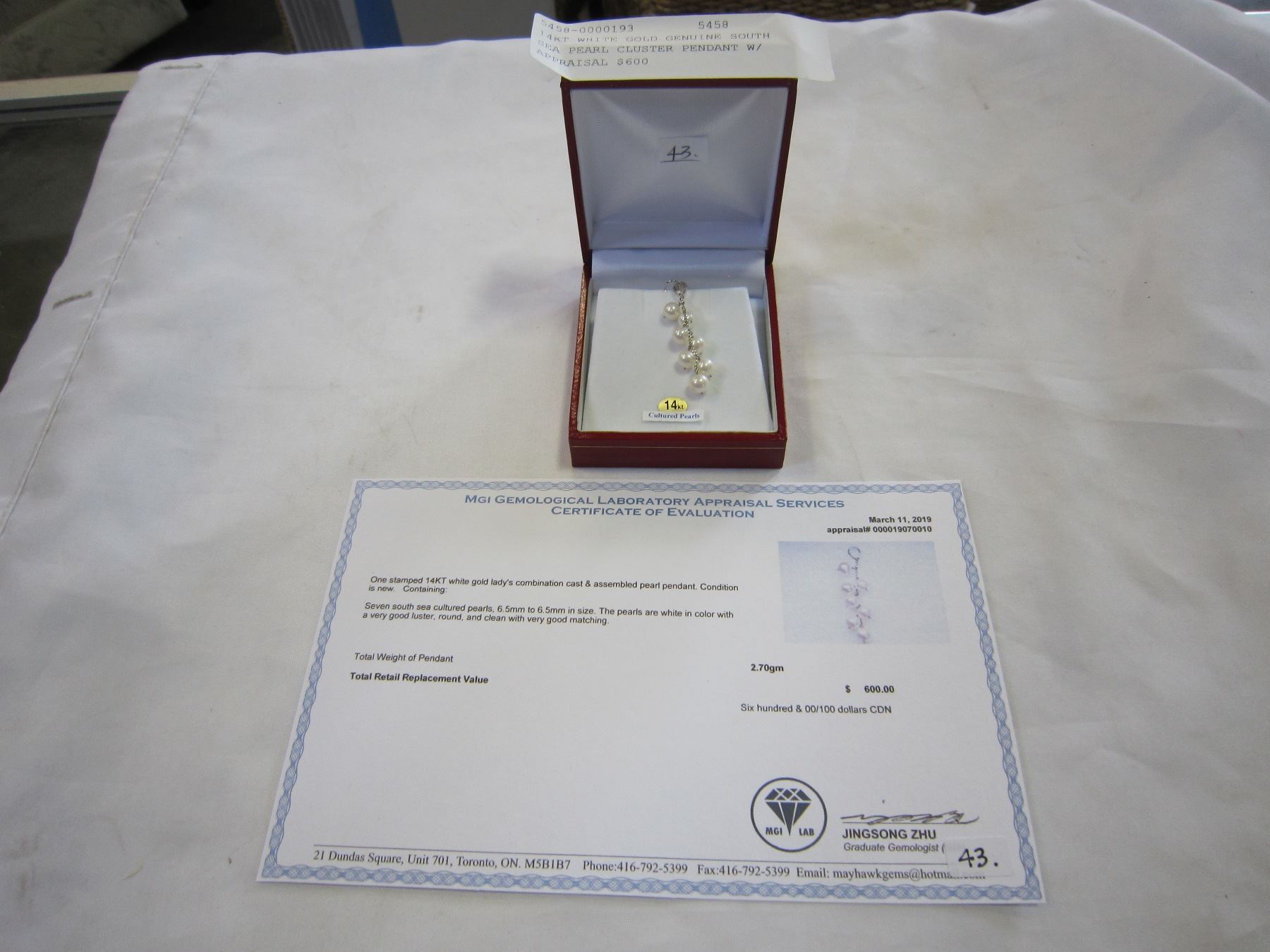 14KT WHITE GOLD GENUINE SOUTH SEA PEARL CLUSTER PENDANT W/ APPRAISAL $600