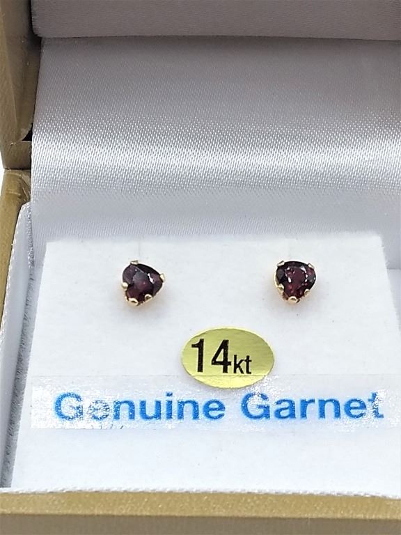 14KT YELLOW GOLD 4mm GENUINE GARNET HEART EARRINGS W/ APPRAISAL $600 - 0.66CTS GARNET