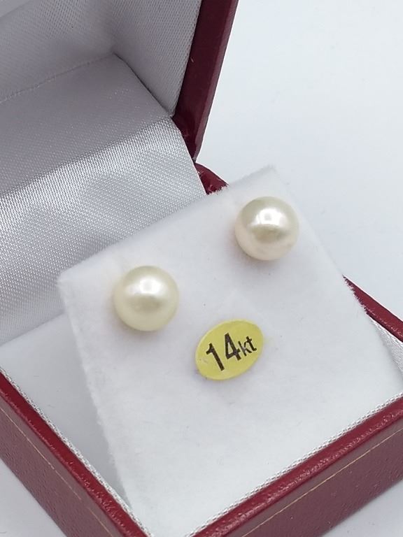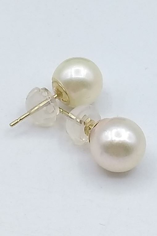 14KT YELLOW GOLD 7mm GENUINE AKOYA CULTRUED PEARL EARRINGS W/ APPRAISAL $2590