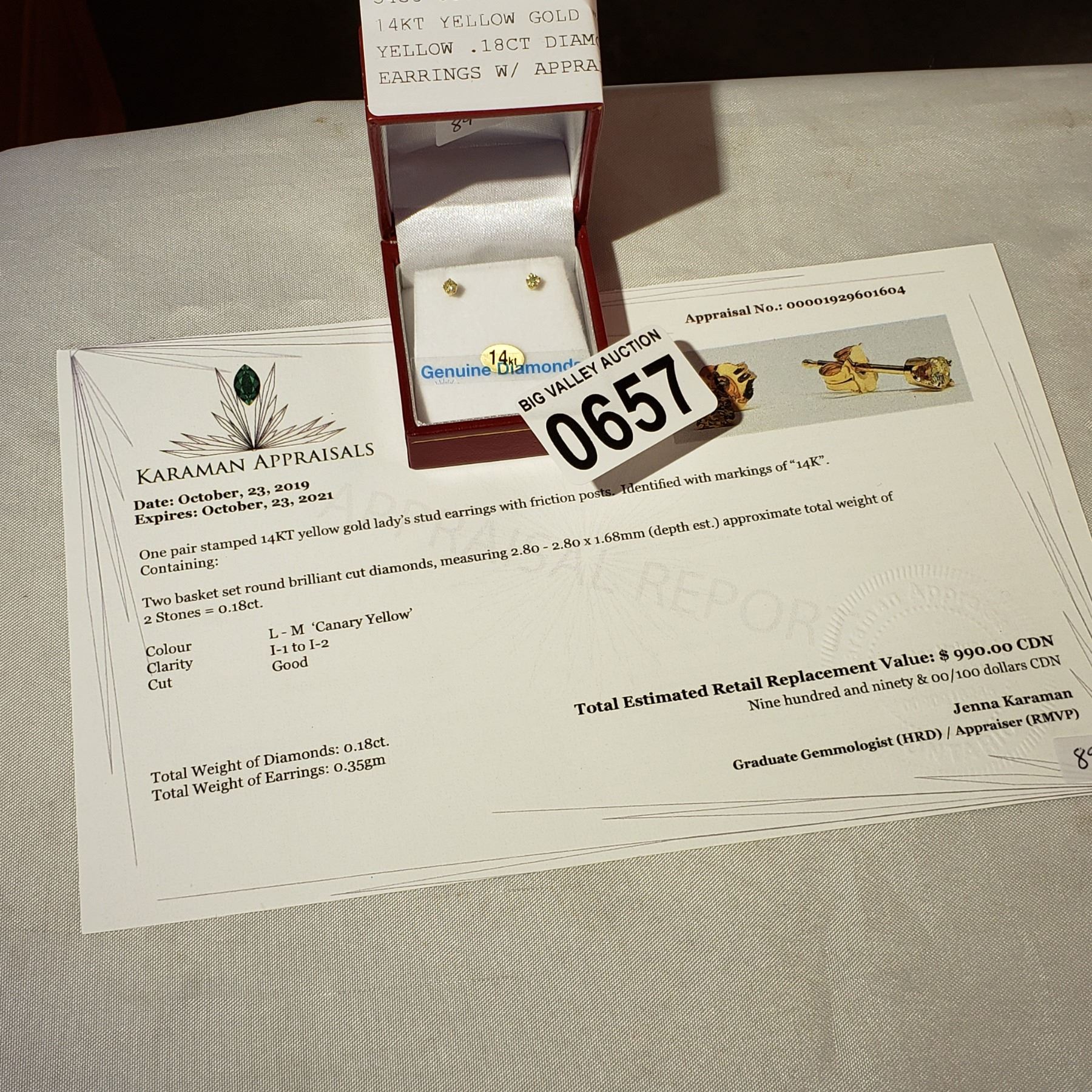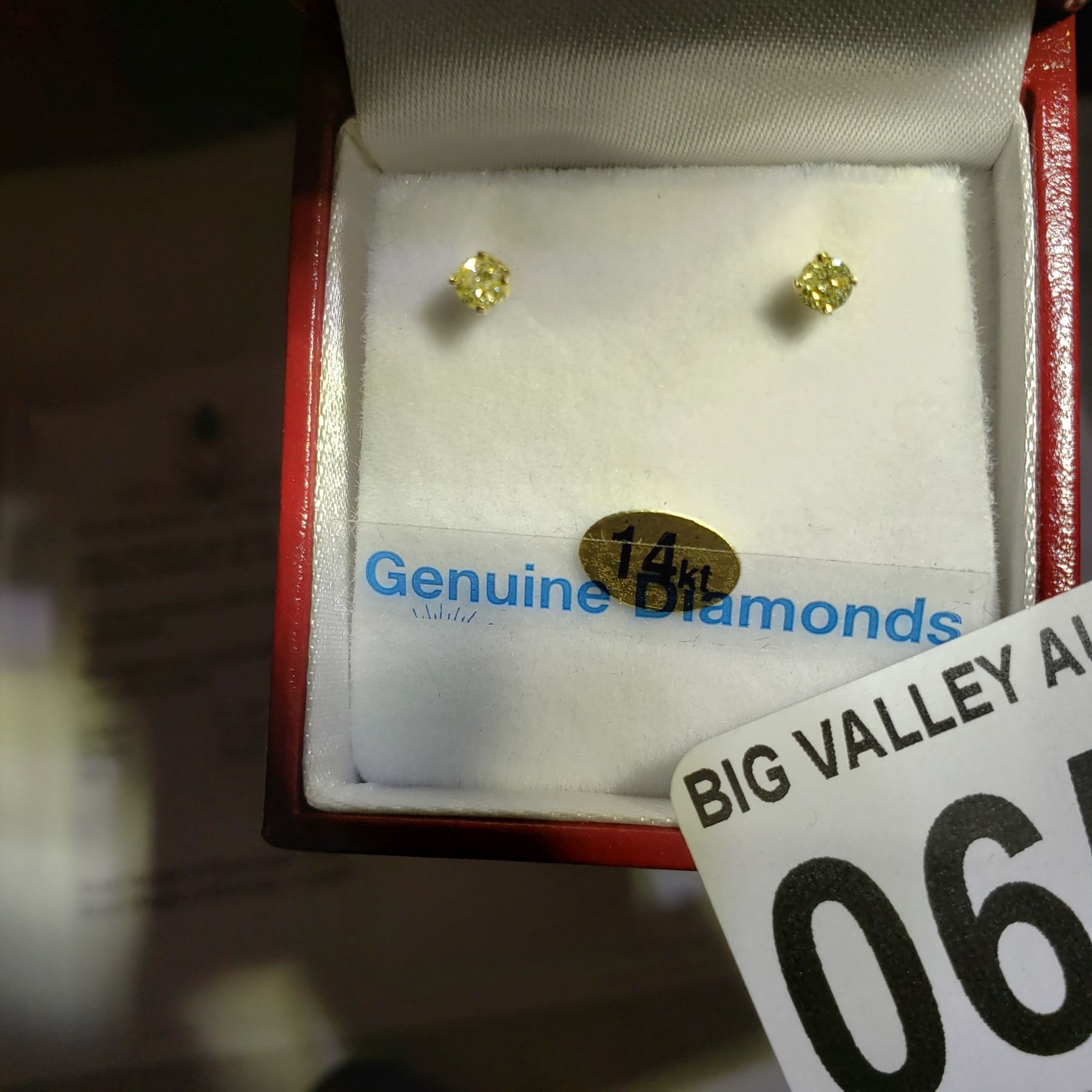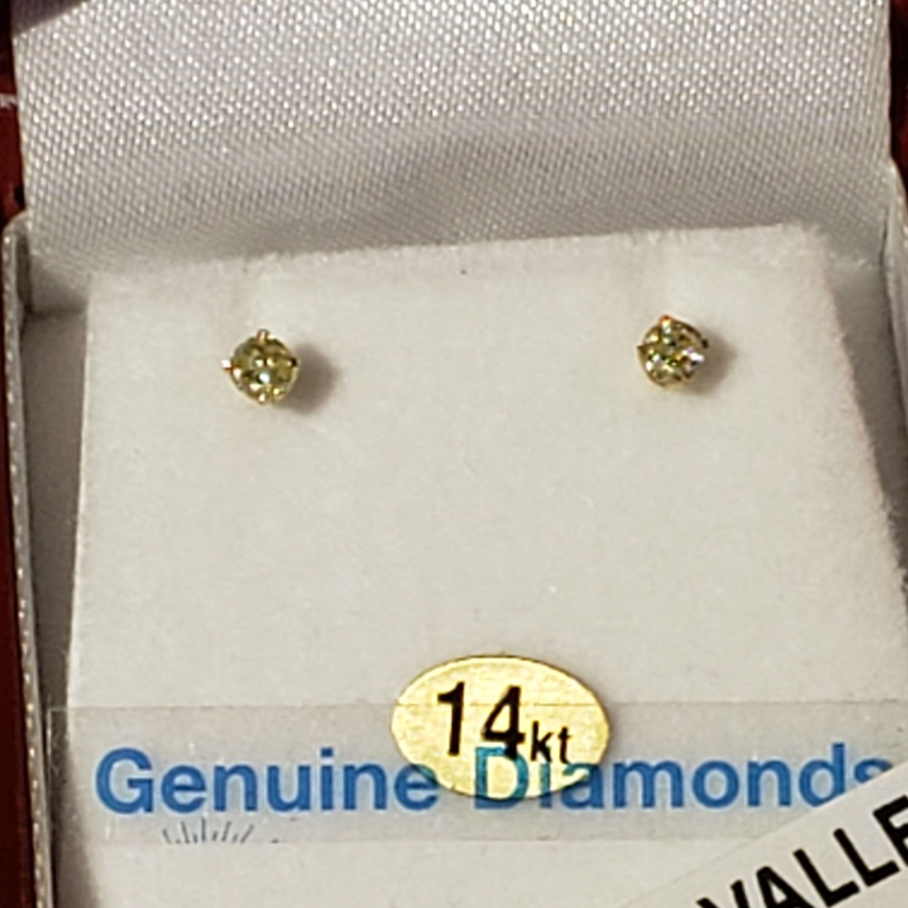 14KT YELLOW GOLD "CANARY" YELLOW .18CT DIAMOND STUD EARRINGS W/ APPRAISAL $990
