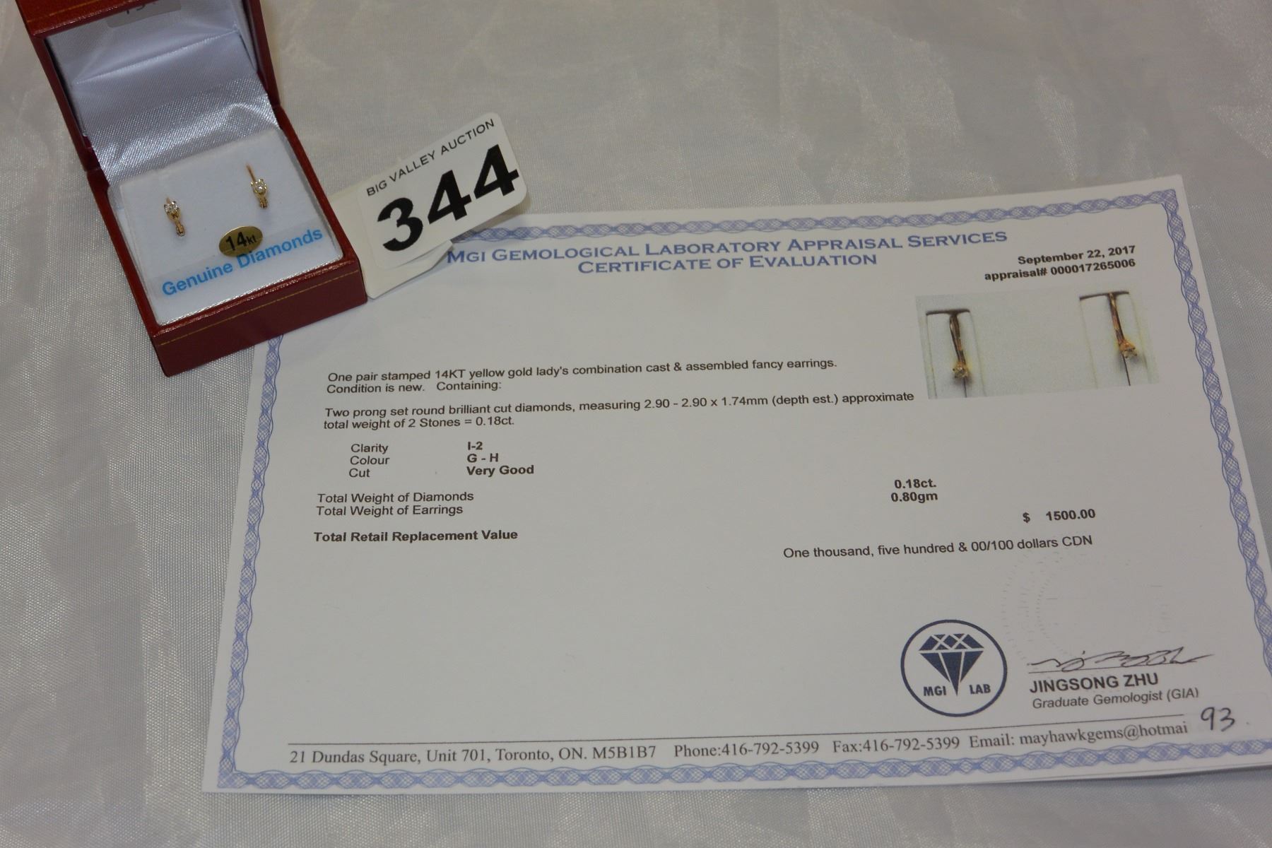 14KT YELLOW GOLD DIAMOND LEVERBACK EARRINGS WITH APPRAISEL $1500.00
