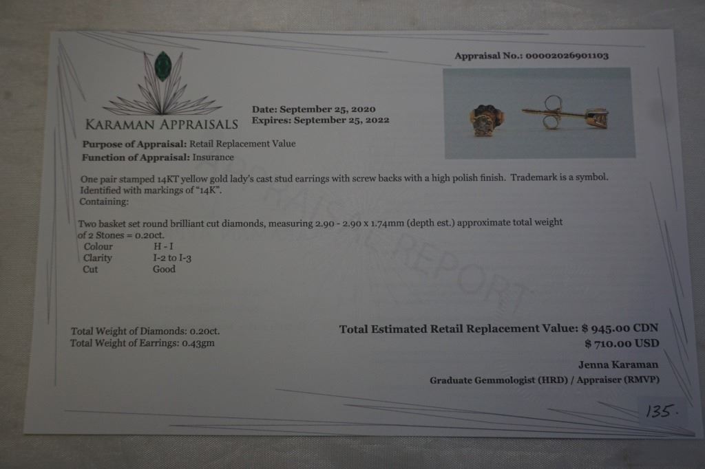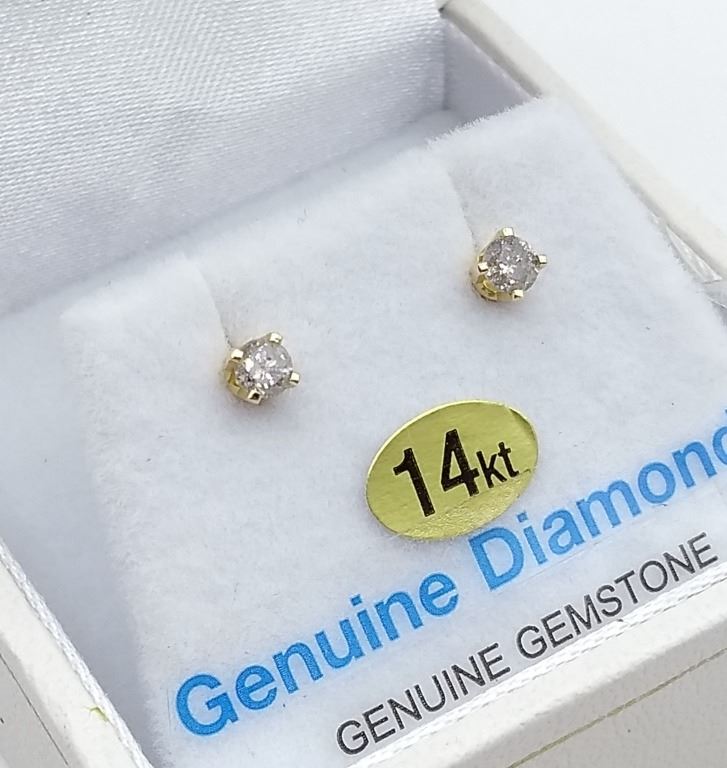 14KT YELLOW GOLD DIAMOND STUD EARRINGS W/ APPRAISAL $945 - .02CTS DIAMOND BIRTHSTONE APRIL