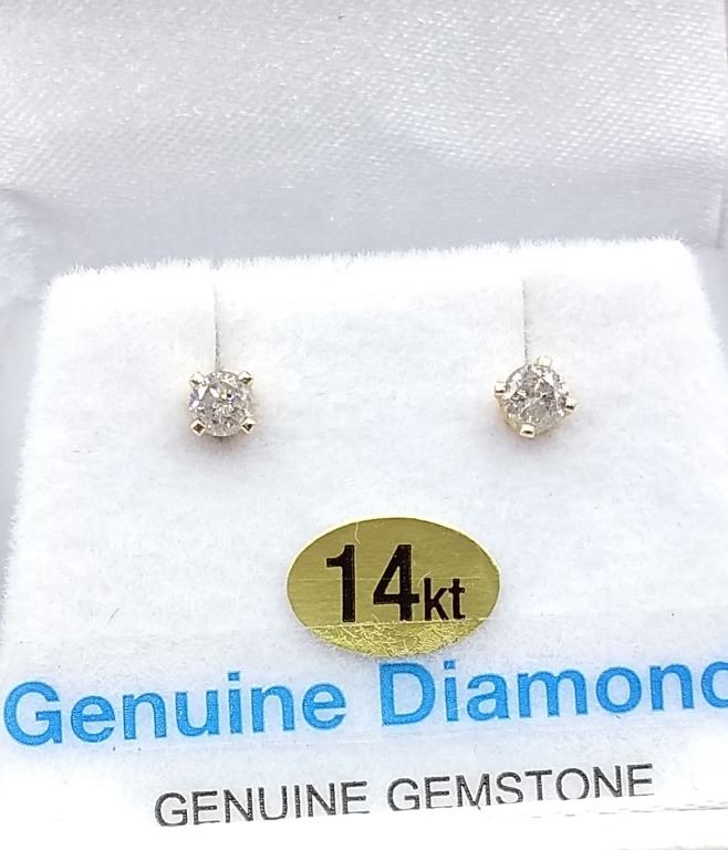 14KT YELLOW GOLD DIAMOND STUD EARRINGS W/ APPRAISAL $945 - .02CTS DIAMOND BIRTHSTONE APRIL