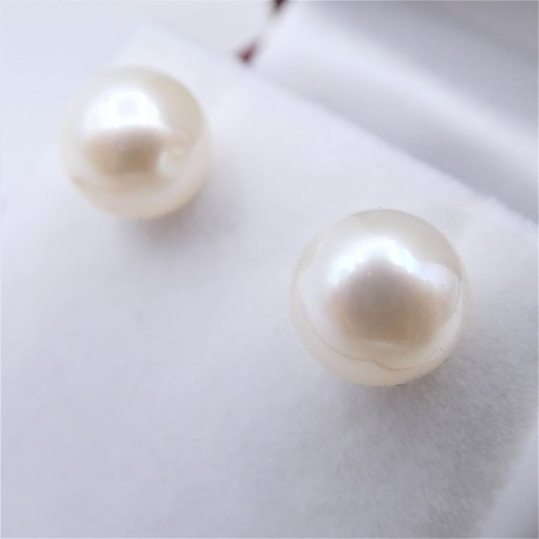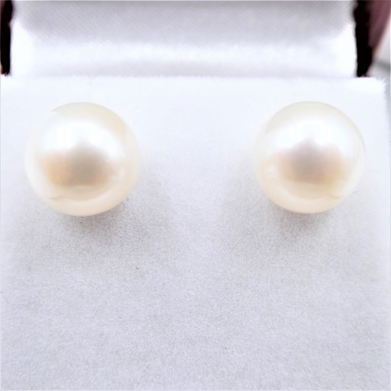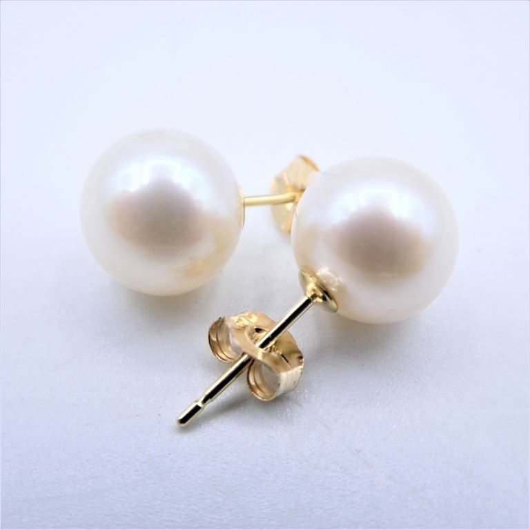 14KT YELLOW GOLD FRESHWATER PEARL 8X8MM EARRINGS, W/A $875.00.
