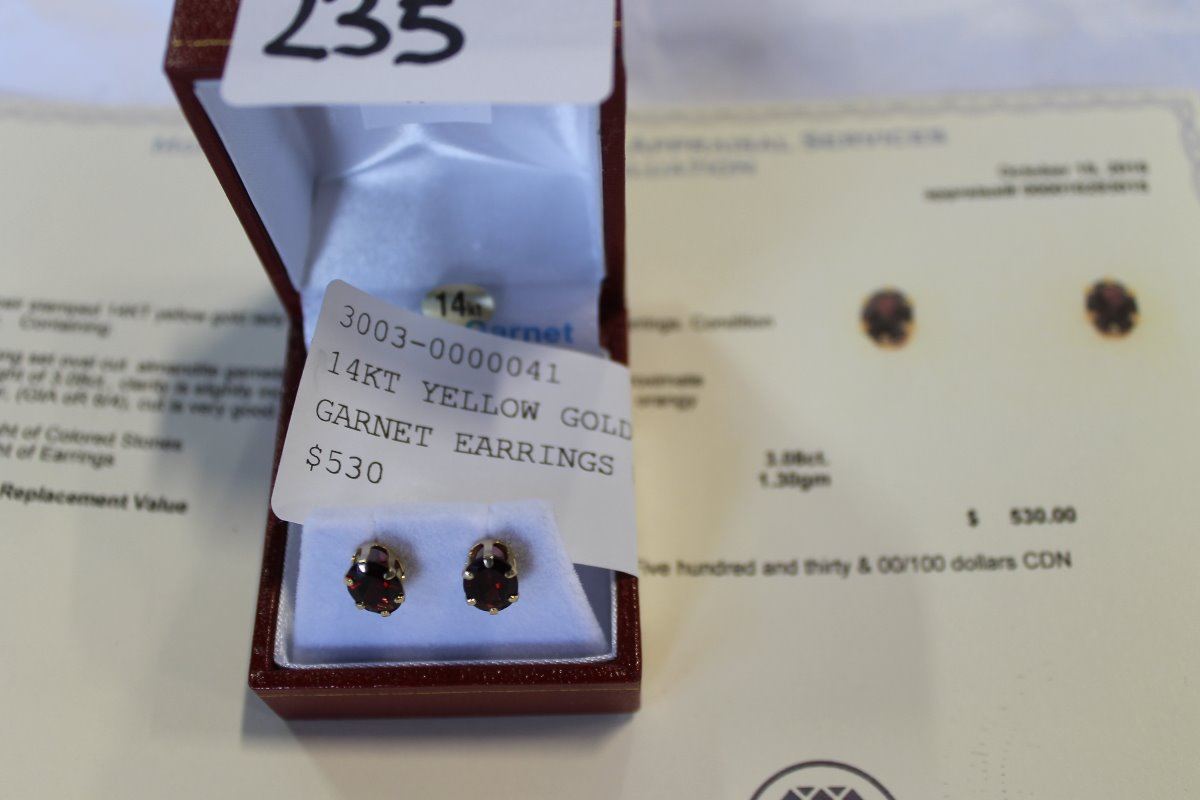 14KT YELLOW GOLD GENUINE GARNET EARRINGS WITH APPRAISAL