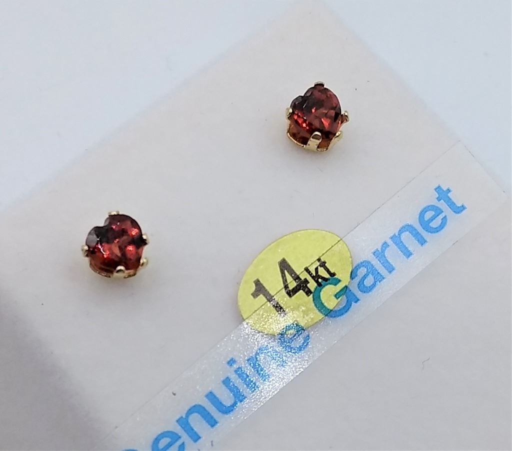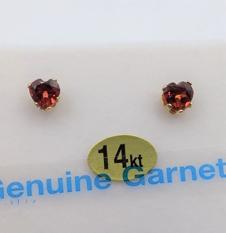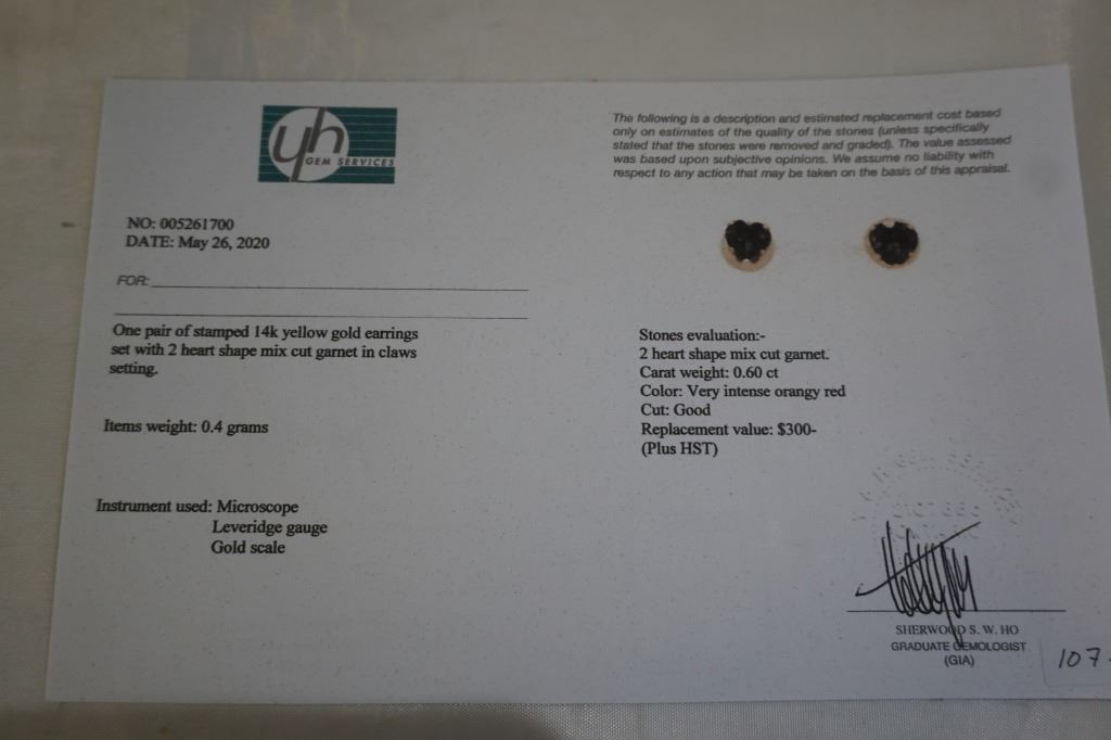 14KT YELLOW GOLD GENUINE GARNET HEART EARRINGS W/ APPRAISAL $300 - 0.6CTS GARNET