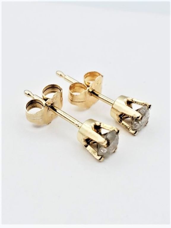 14KT. YELLOW GOLD NATURAL DIAMOND STUD EARRINGS, 0.30CTS, W/A $720.00