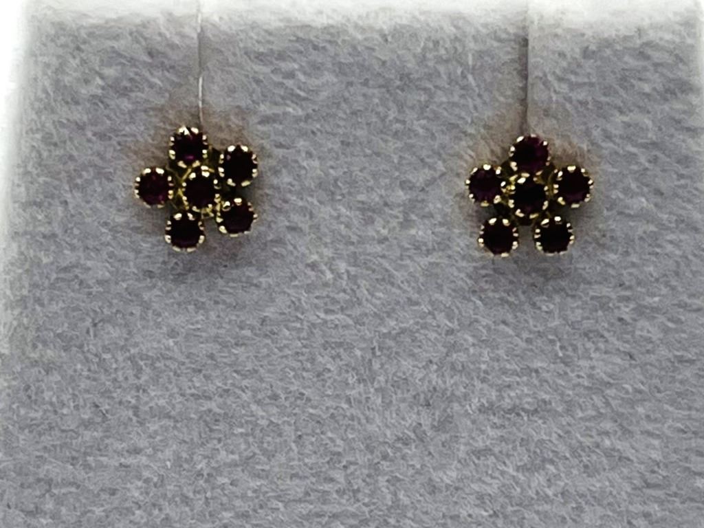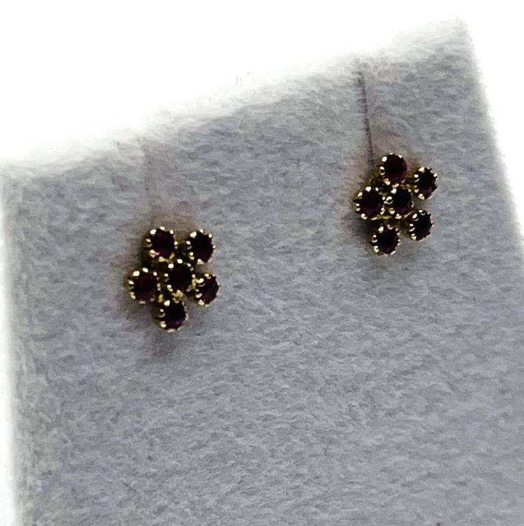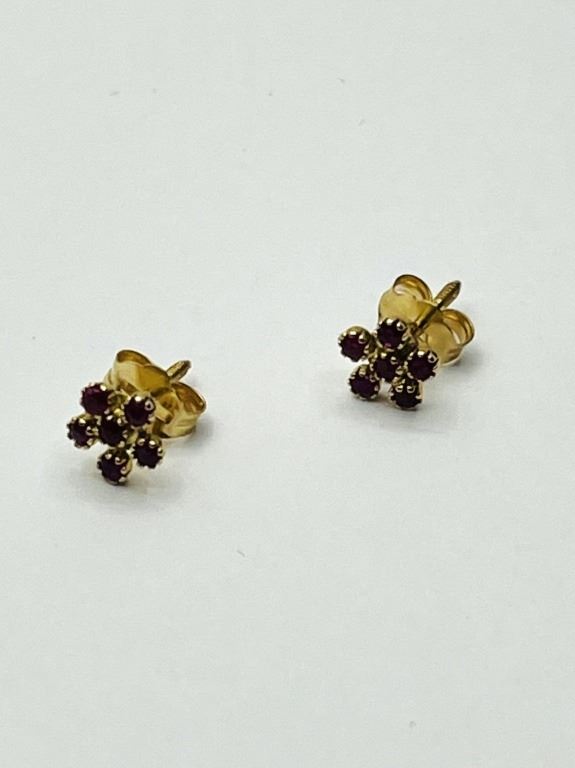 14KT YELLOW GOLD NATURAL ENHANCED RUBY EARRINGS, RETAIL $400.00. RUBY IS THE BIRTHSTONE FOR JULY.