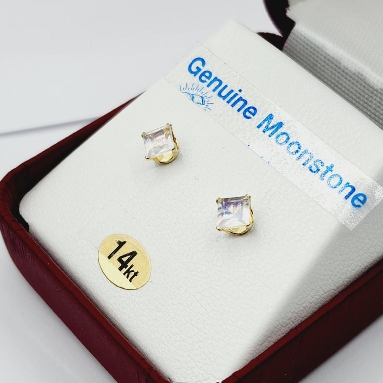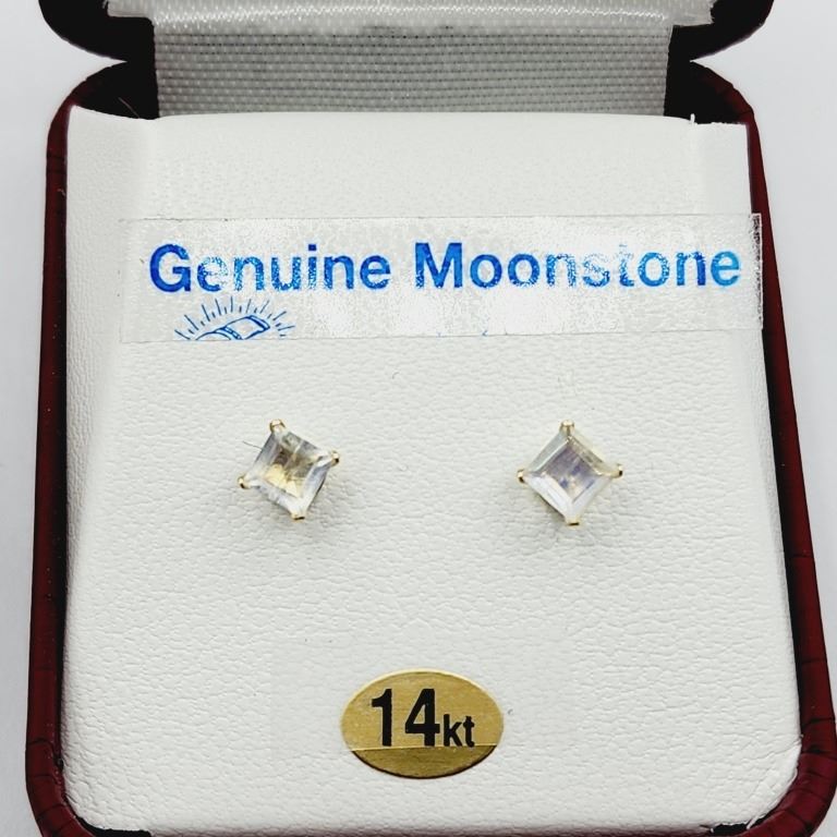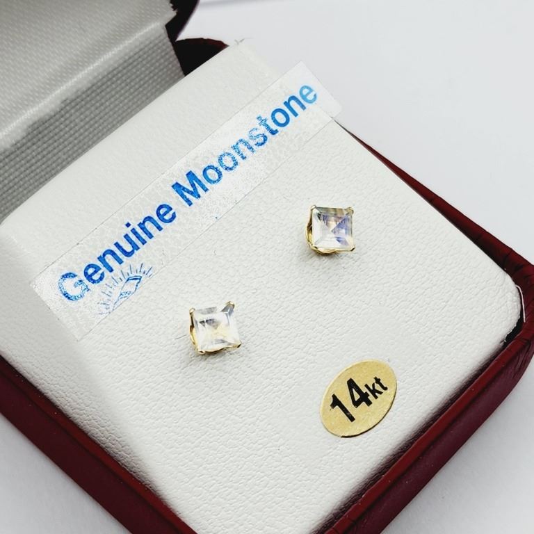 14KT YELLOW GOLD NATURAL MOONSTONE (0.54CT) EARRING, W/A $380.00.