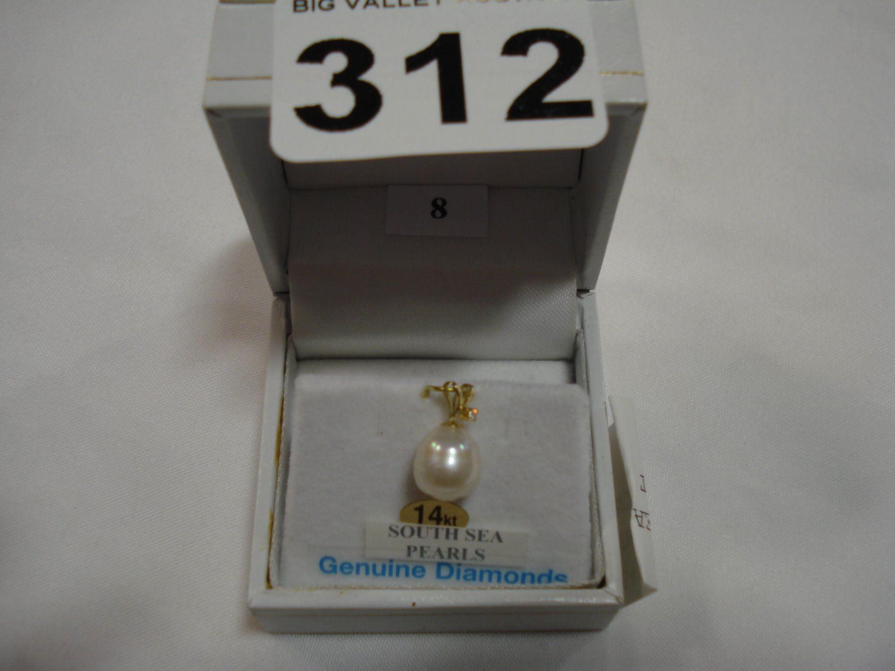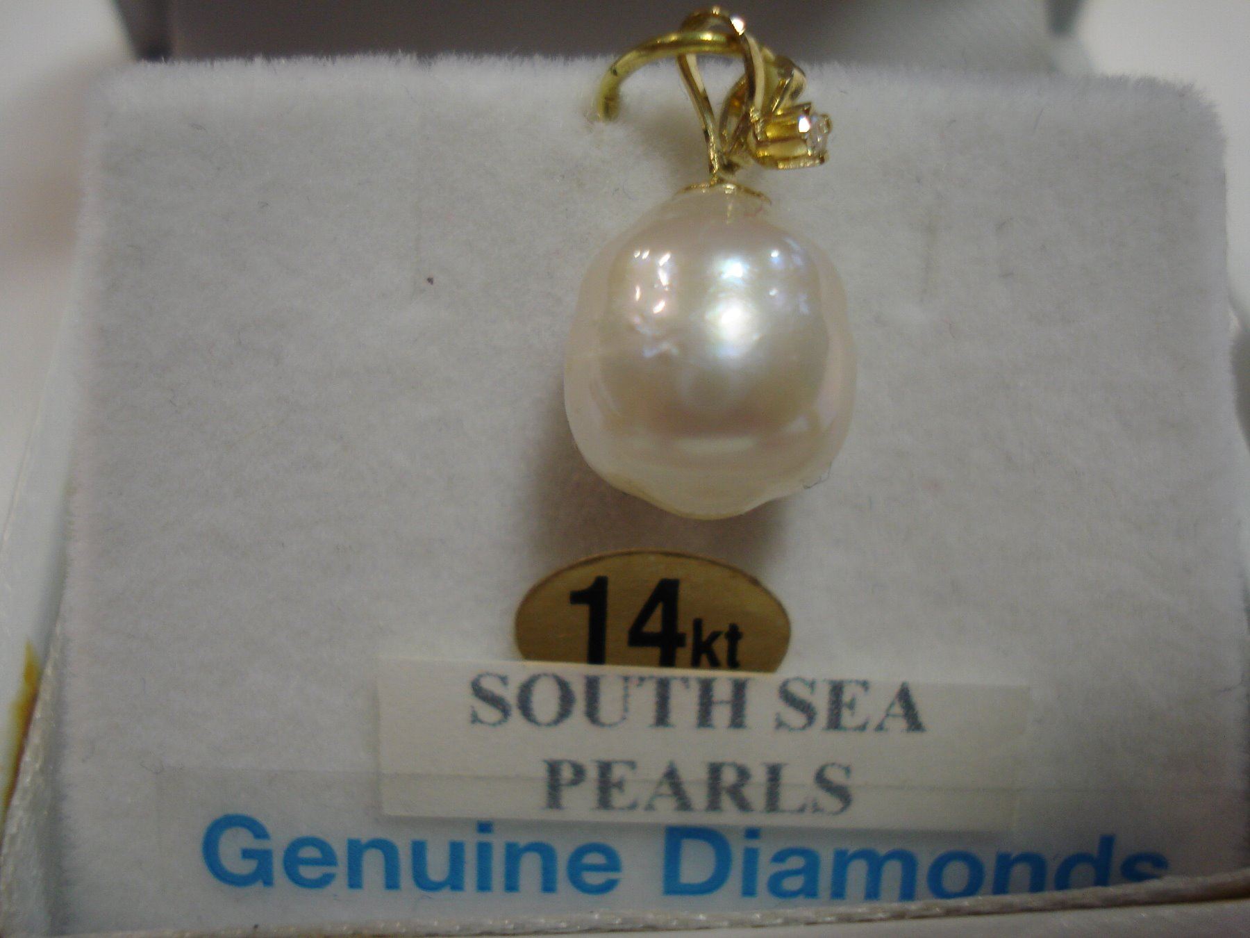 14KT YELLOW GOLD SOUTH SEA PEARL AND DIAMOND PENDANT RETAIL $250.00