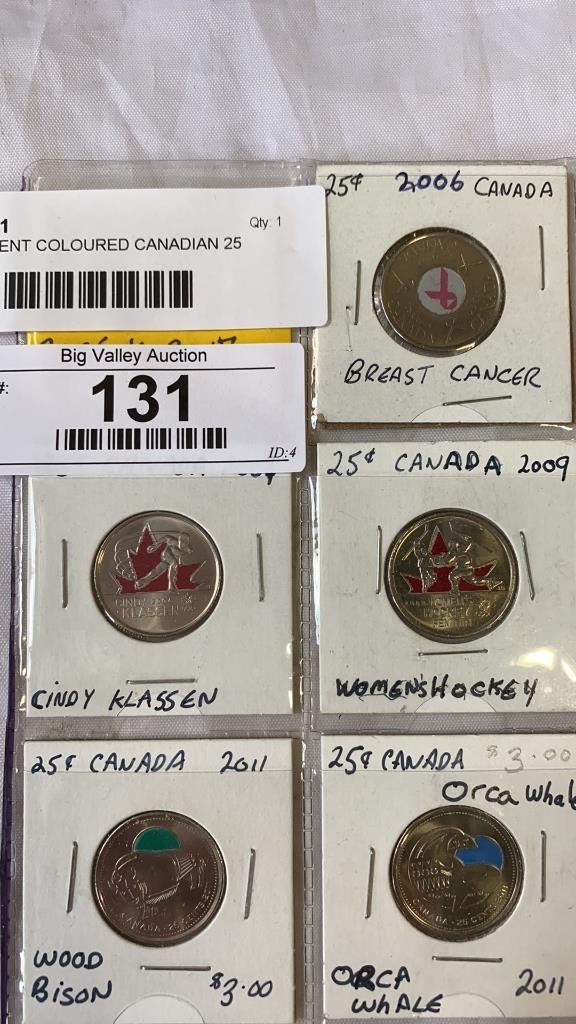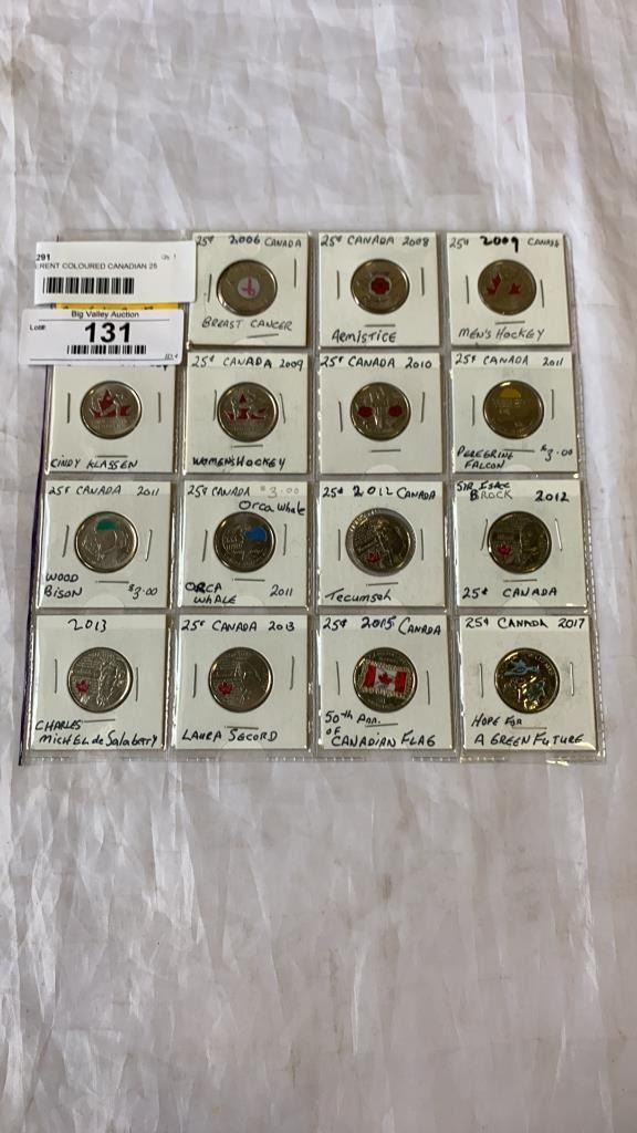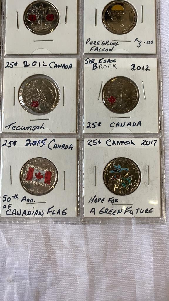 15 DIFFERENT COLOURED CANADIAN 25 CENT 2006 - 2017