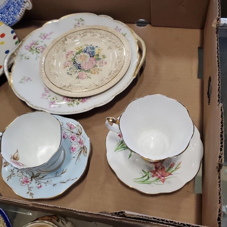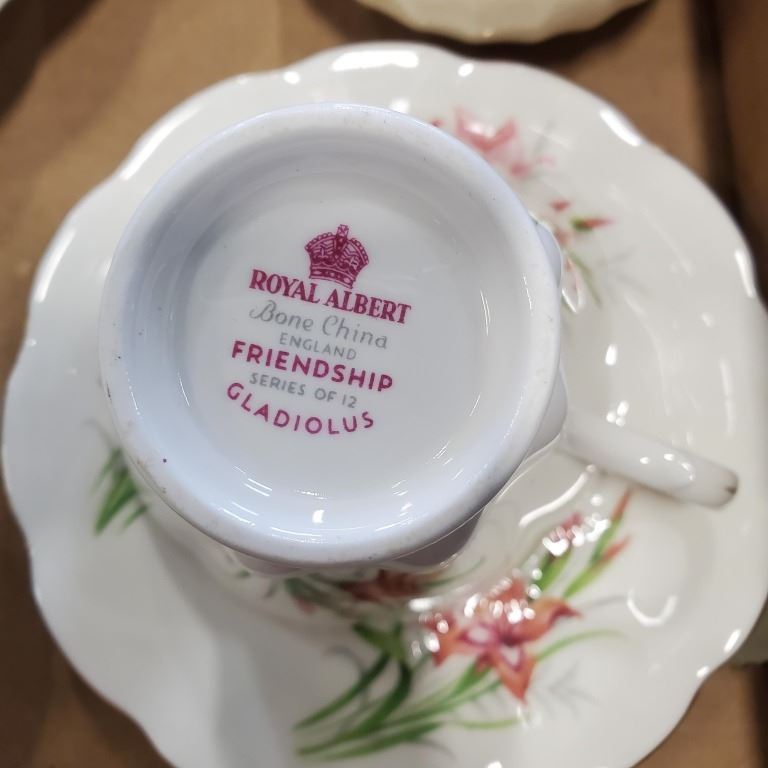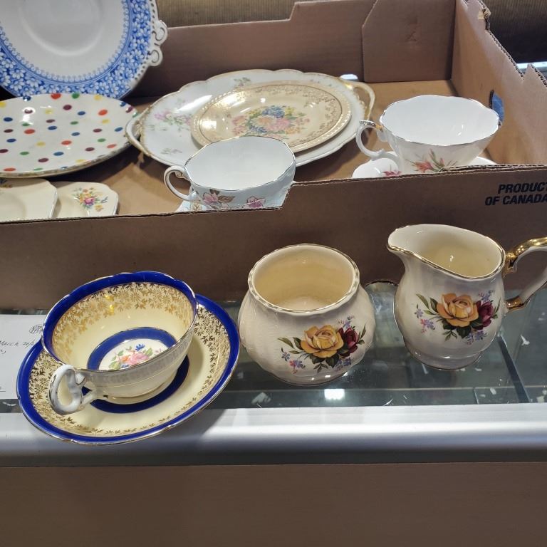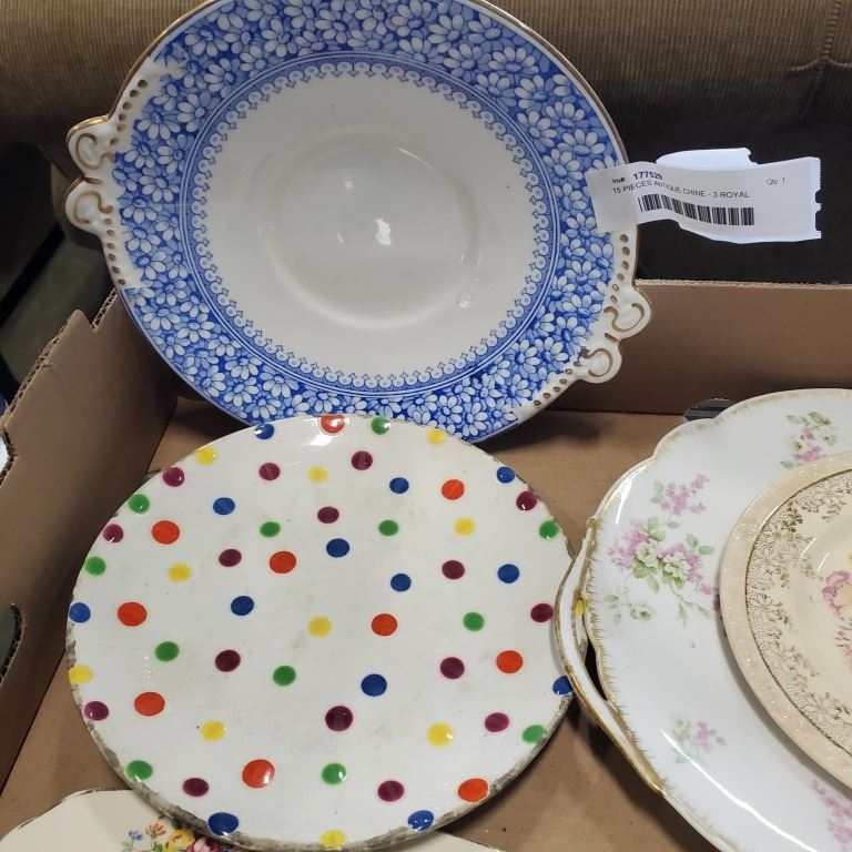 15 PIECES ANTIQUE CHINE - 3 ROYAL GRAFTON CUPS AND SAUCERS, ROYAL ALBERT, AND FOLEY, SADLER CREAM AND SUGAR, 7 PLATES