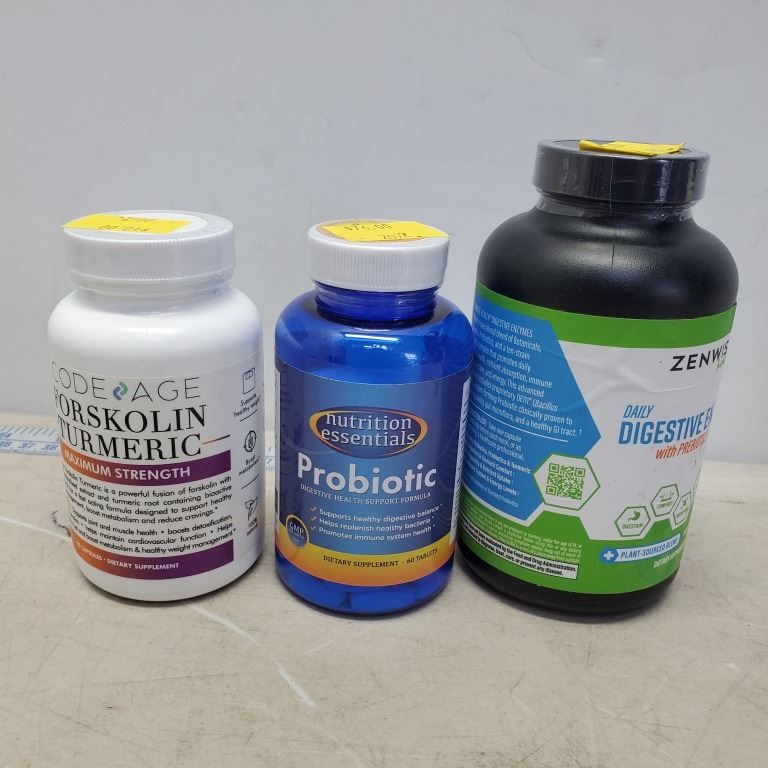 $150 OF DIETARY SUPPLEMENTS FORSKOLIN TURMERIC, PROBIOTIC AND DIGESTIVE ENZYMES BB 2022