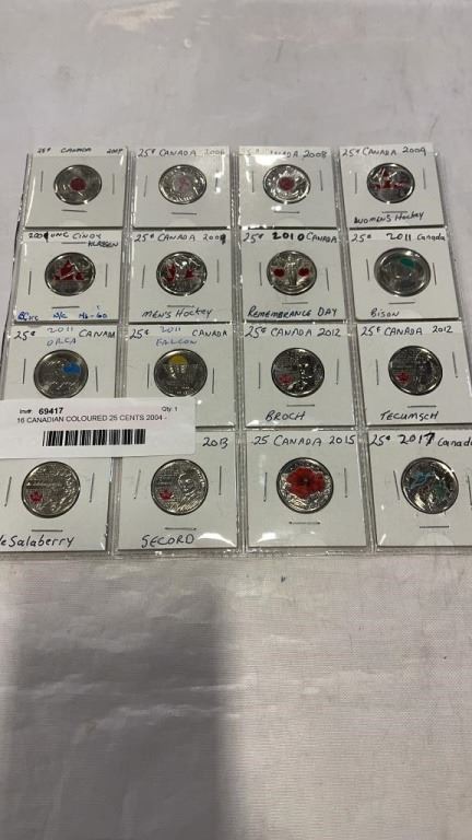 16 CANADIAN COLOURED 25 CENTS 2004 - 2017