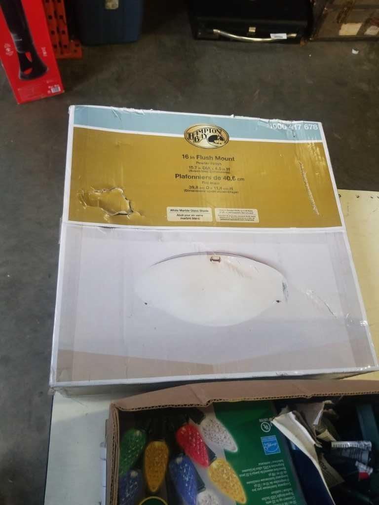 16 INCH FLUSH MOUNT CEILING LIGHT AND CASE OF CHRISTMAS LIGHTS