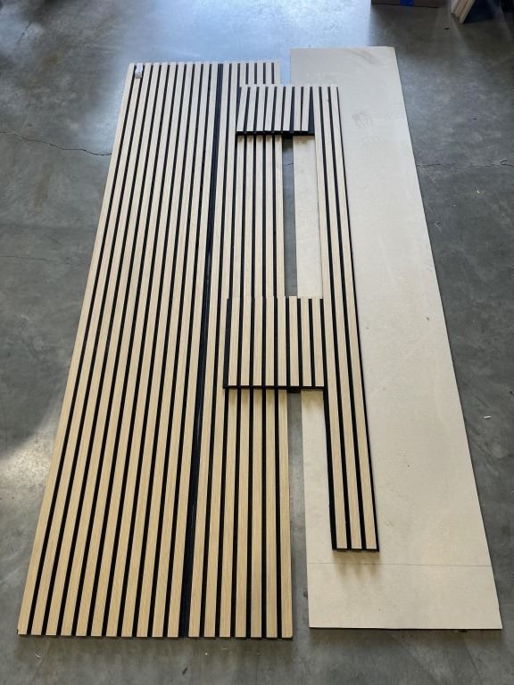 16 INCH X 8FT 1/2 MDF BOARD, AND 3 CUT PIECES OF ACCOUSTICAL PANELLING