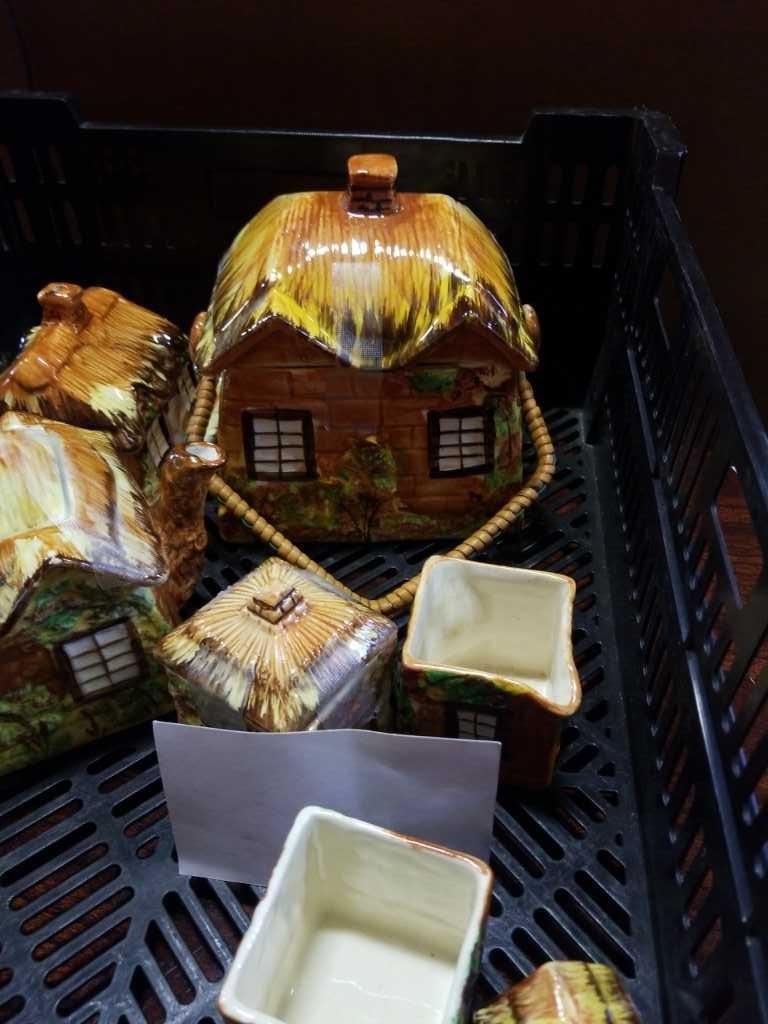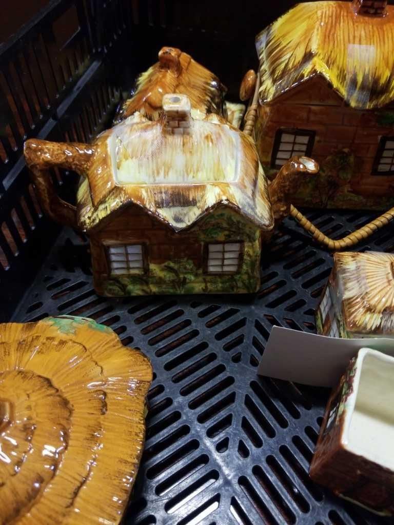 16 PIECE PRICE BROS COTTAGE WARE SET - TEAPOT, CREAM AND SUGAR, CONDIMENT POTS, SALT AND PEPPER, COO