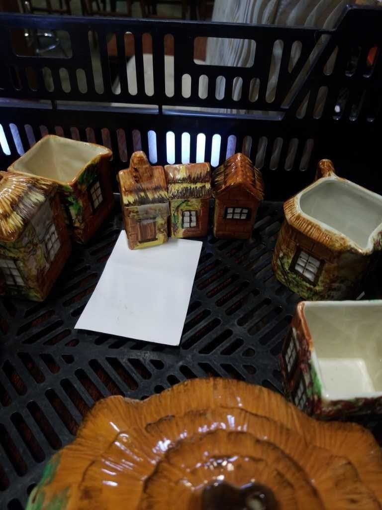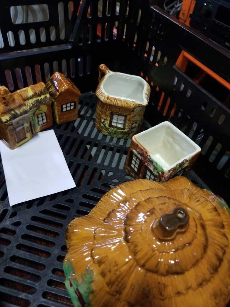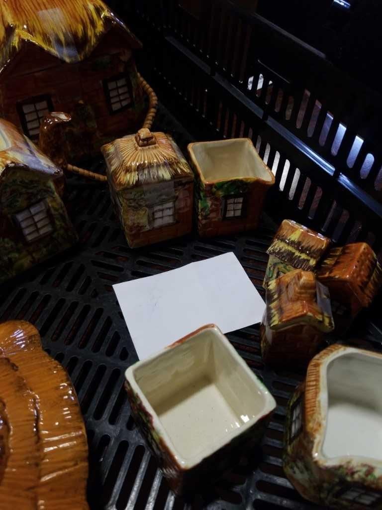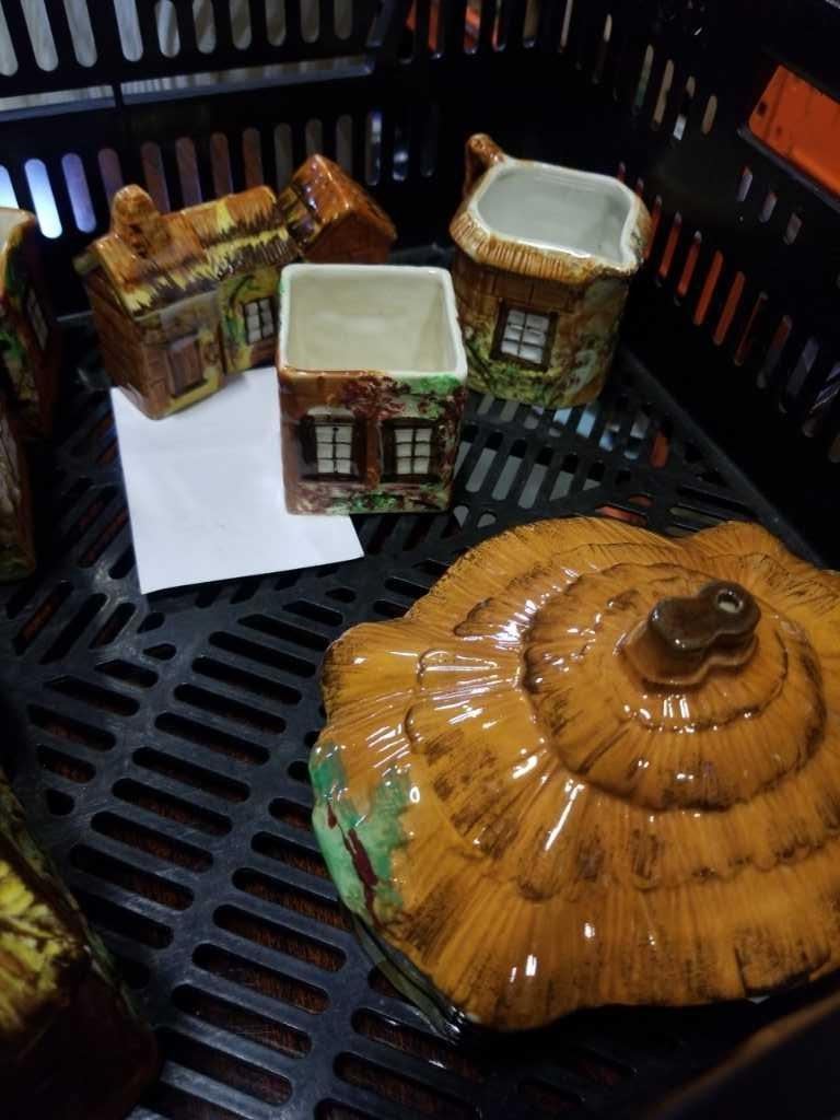 16 PIECE PRICE BROS COTTAGE WARE SET - TEAPOT, CREAM AND SUGAR, CONDIMENT POTS, SALT AND PEPPER, COOKIE JAR WITH LID