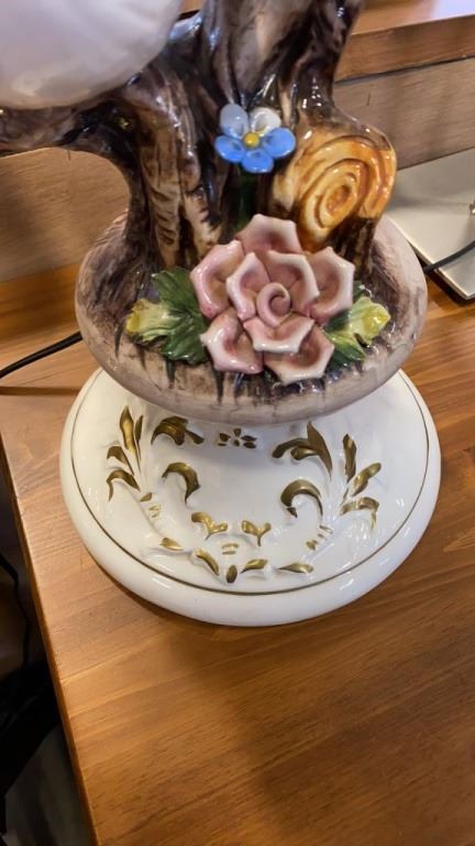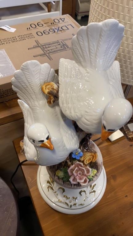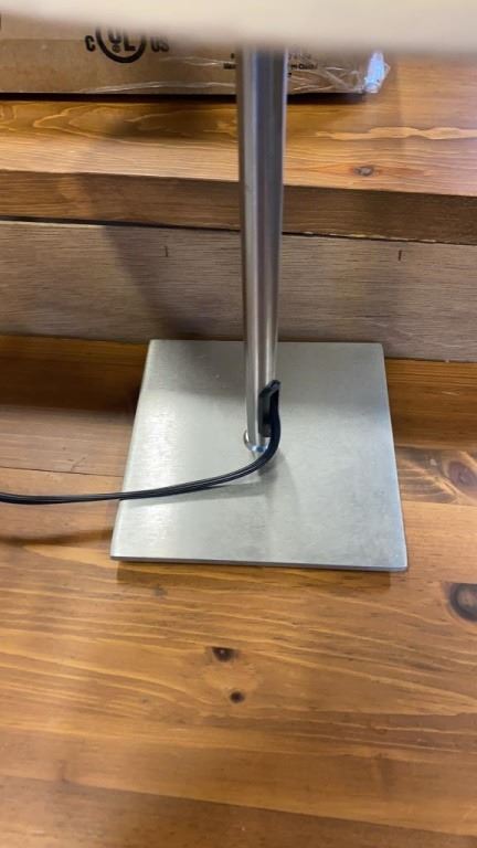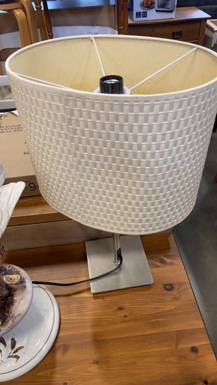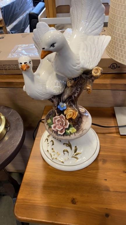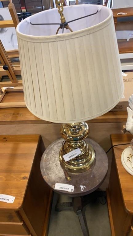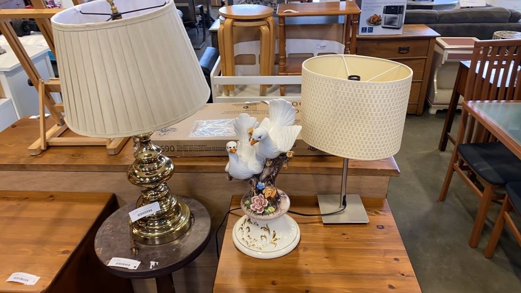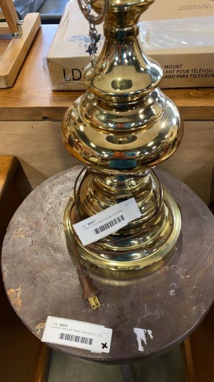 17 INCH TALL BIRD FIGURE BRUSHED METAL TABLE LAMP AND BRASS TABLE LAMP
