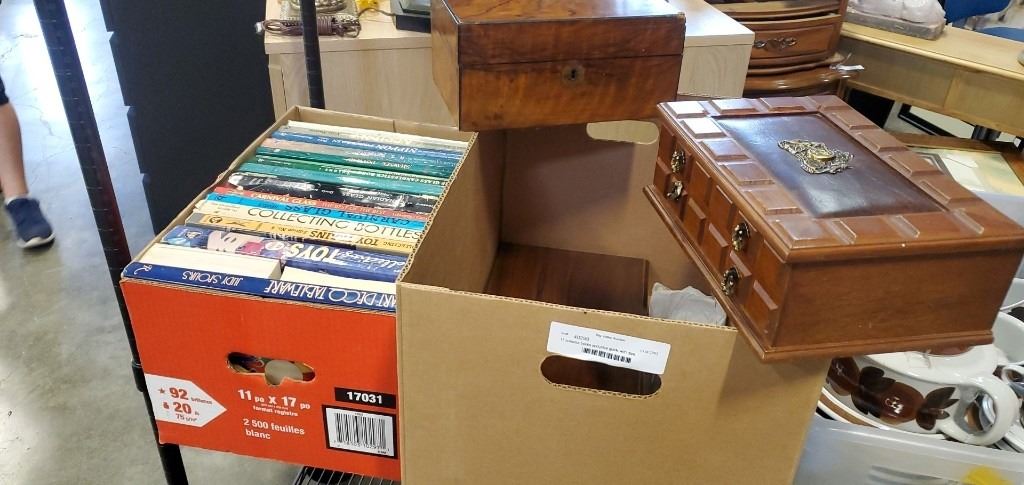 17 collector books and price guide with dark walnut jewellery case dresser top box and dark walnut box