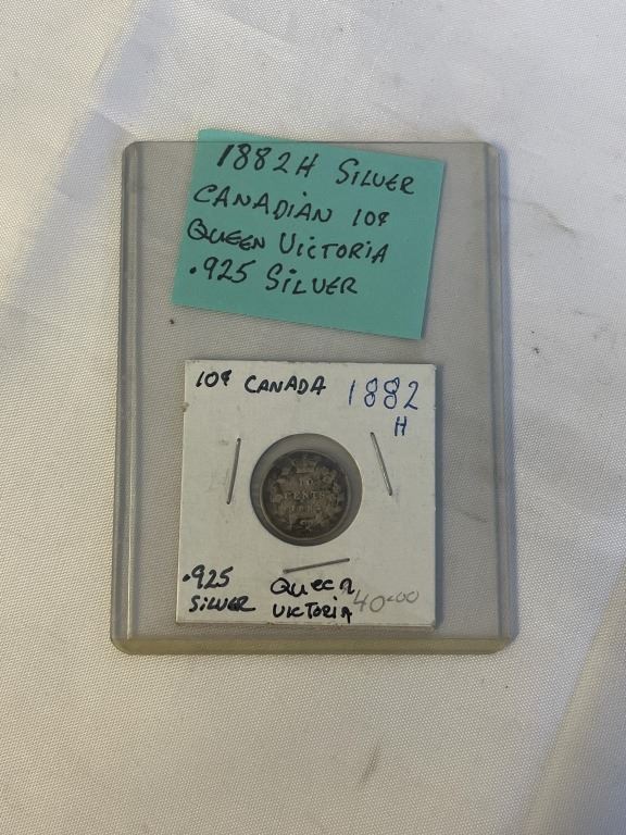 1882 H SILVER CANADIAN 10 CENT QUEEN VICTORIA .925 SILVER