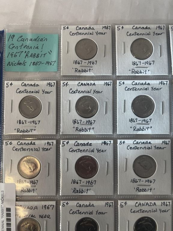 19 CANADIAN 1967 CENTENNIAL "RABBIT" NICKELS 1867-1967