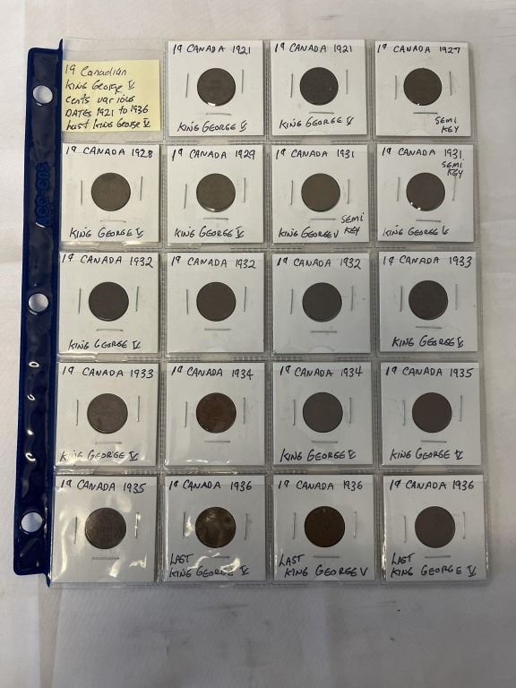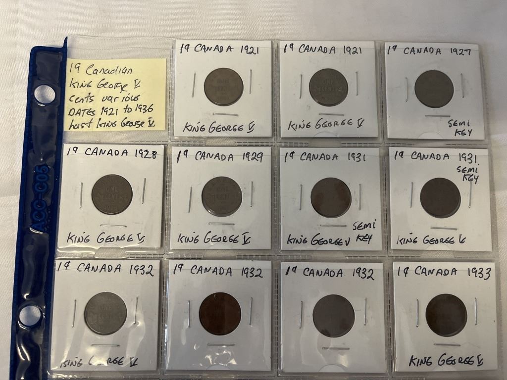 19 CANADIAN KING GEORGE V CENTS VARIOUS DATES 1921-1935