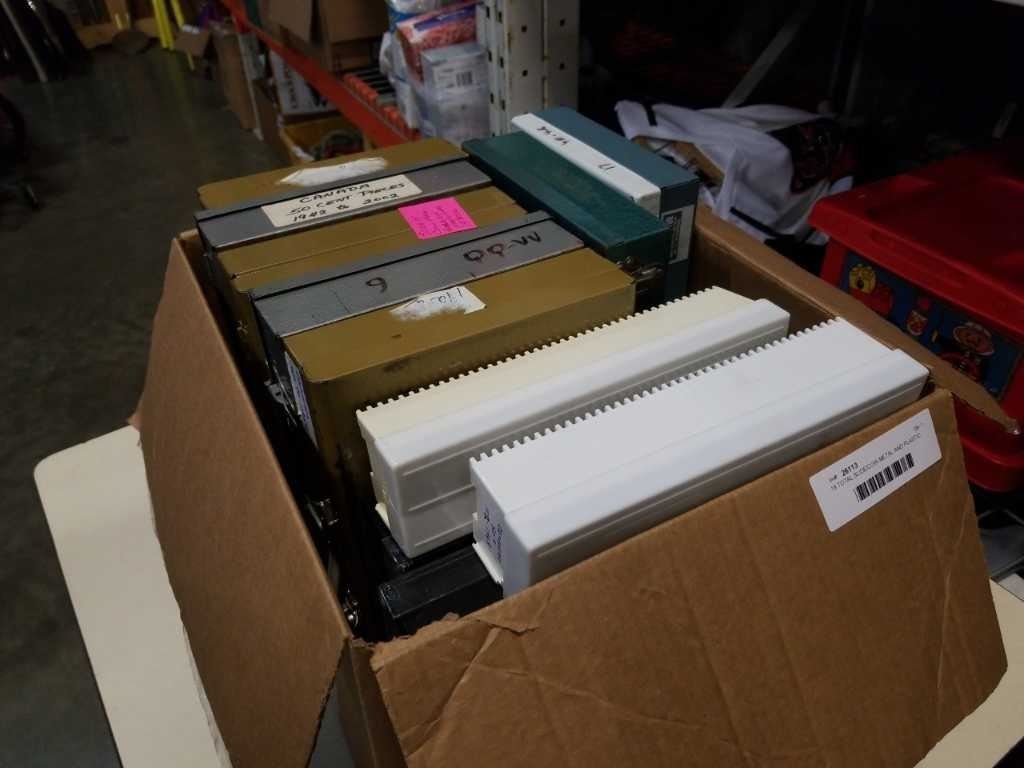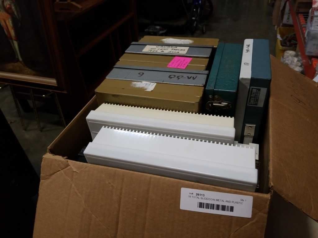 19 TOTAL SLIDE/COIN METAL AND PLASTIC BOXES