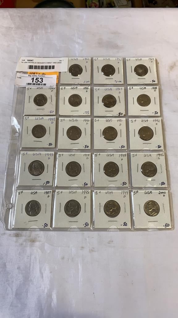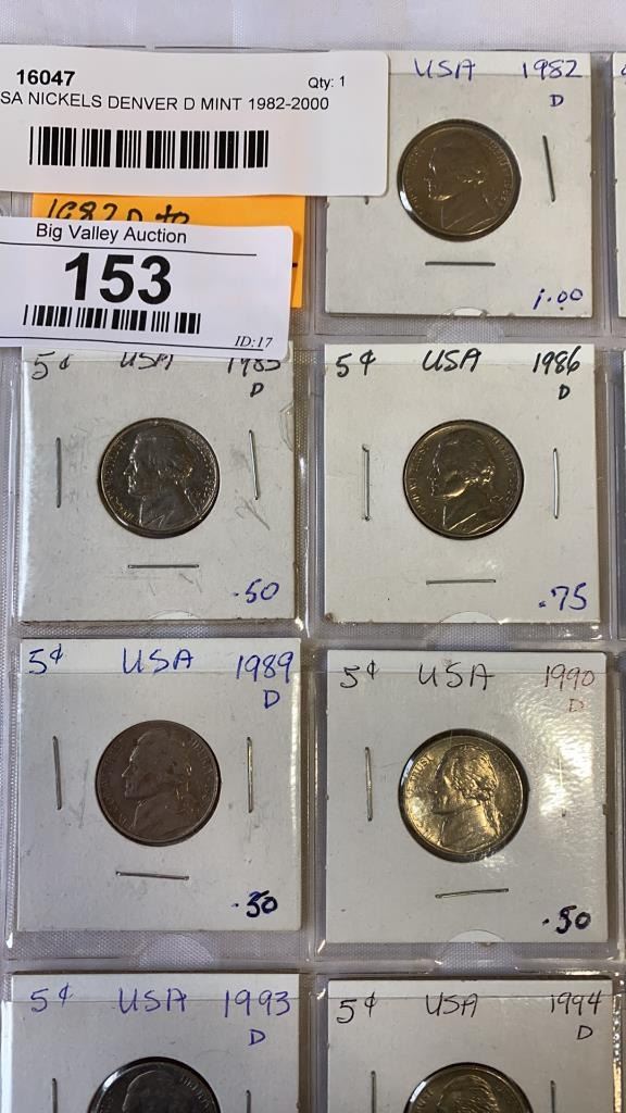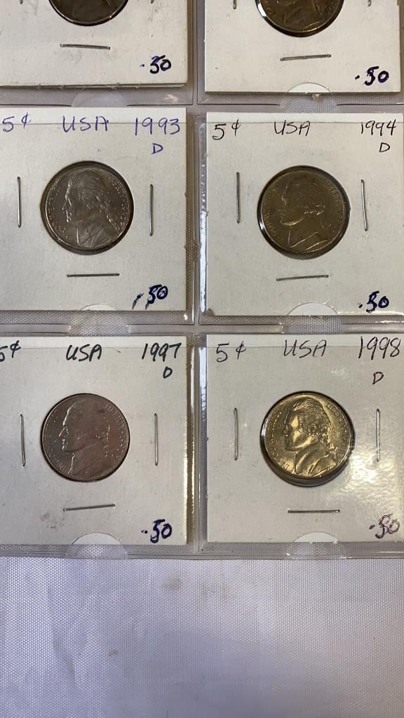 19 USA NICKELS DENVER D MINT 1982-2000 D ALL DATES